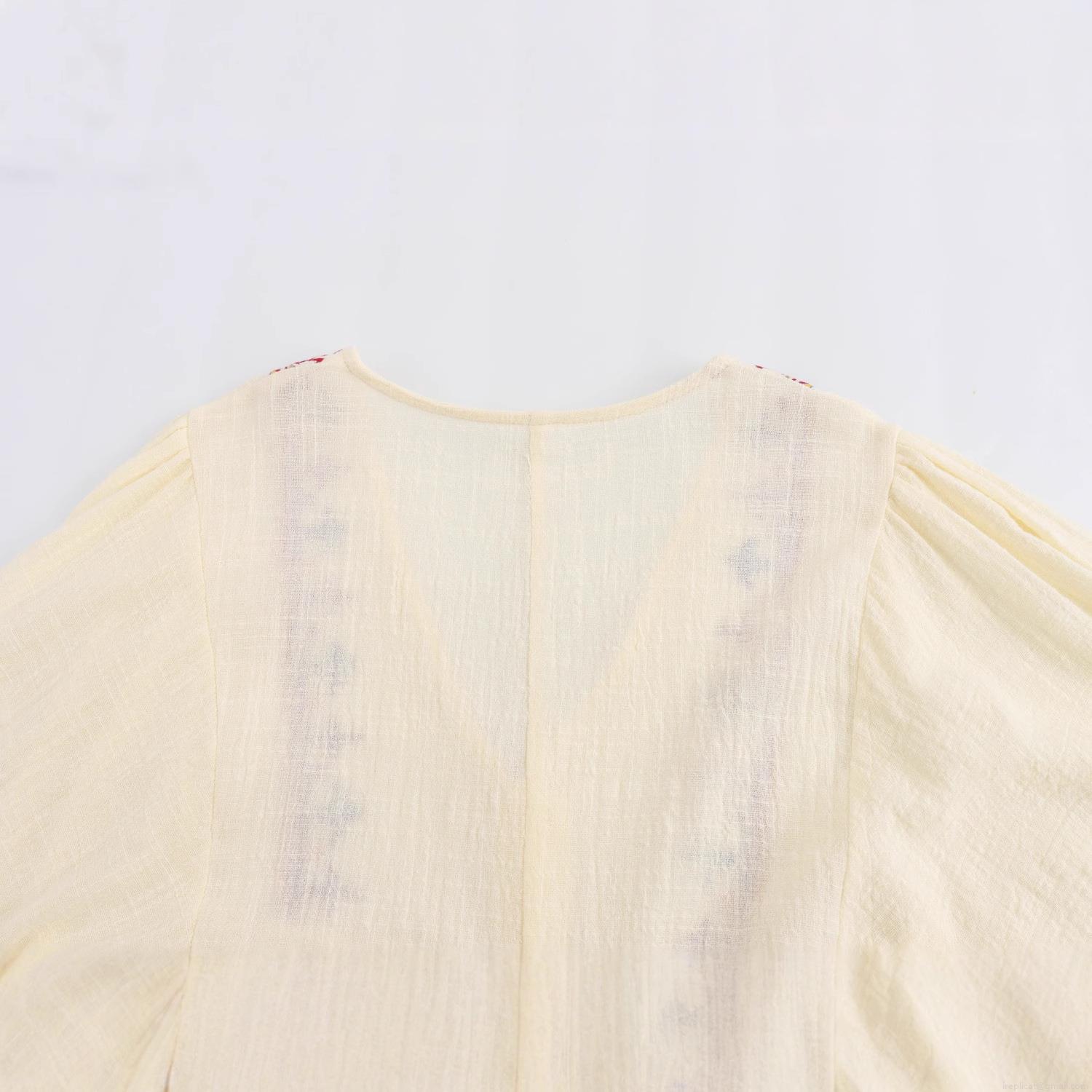 Ethnic Style Embroidery, Puff Sleeves With Gathered Cuffs