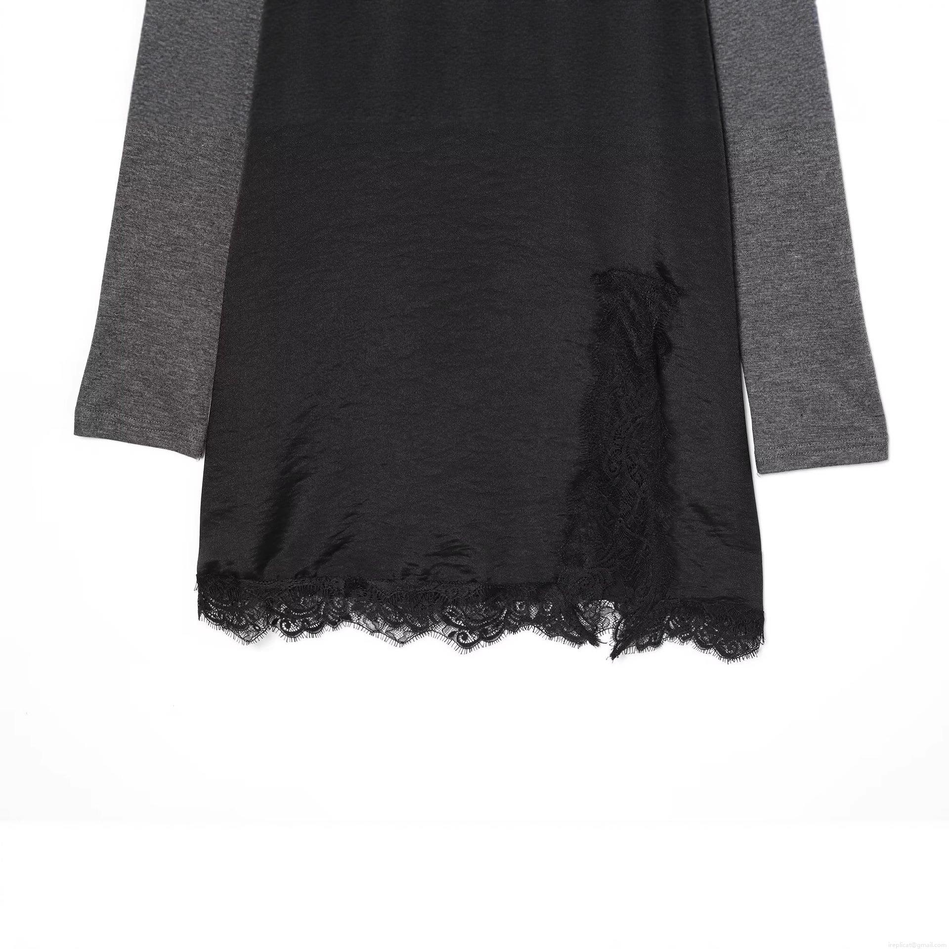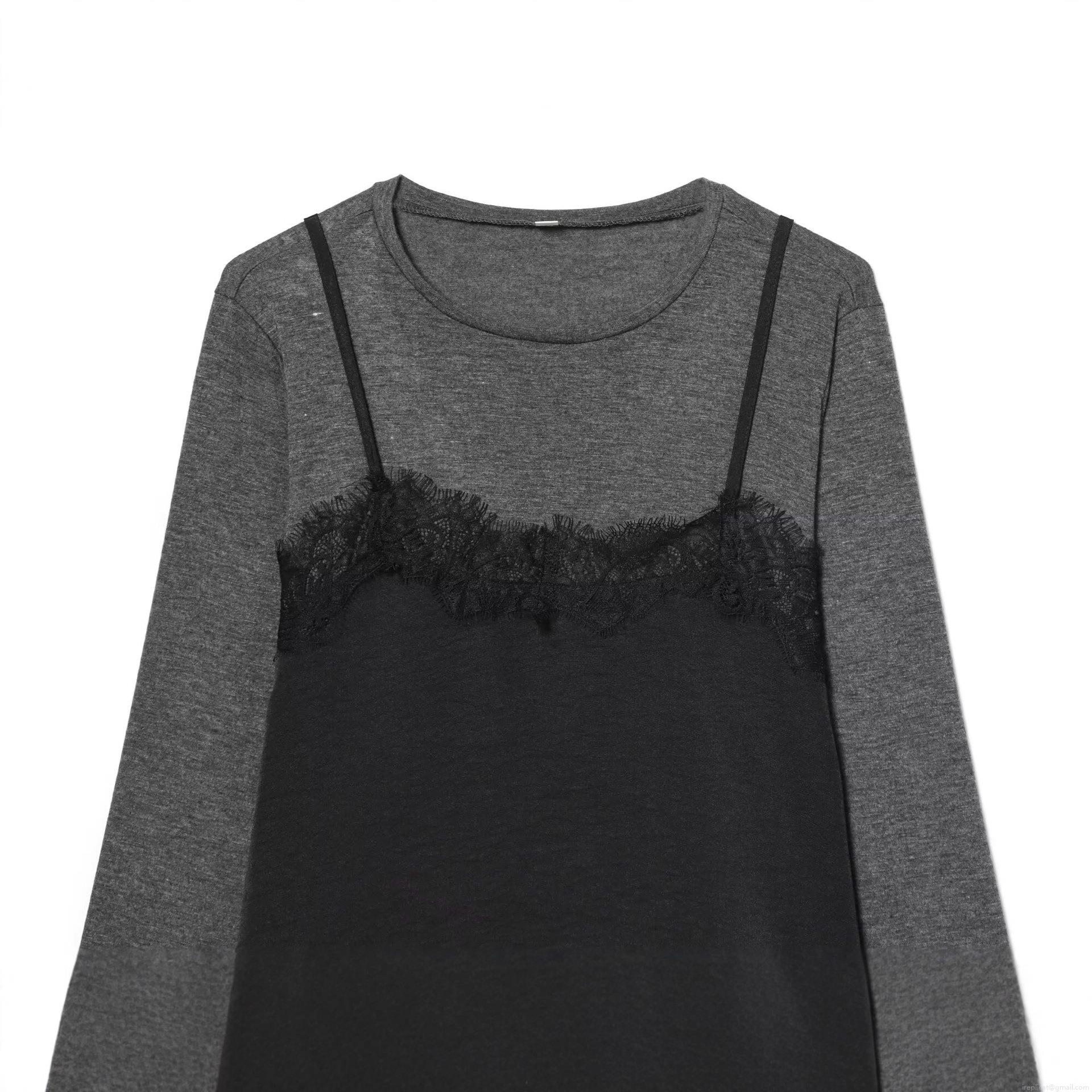 • Women's Fake Two-Piece Patchwork Dress Mercerized Cotton Long Sleeve Round Neck Lace Trim Cami Dress Casual Street Style Grey Black Mini Dress