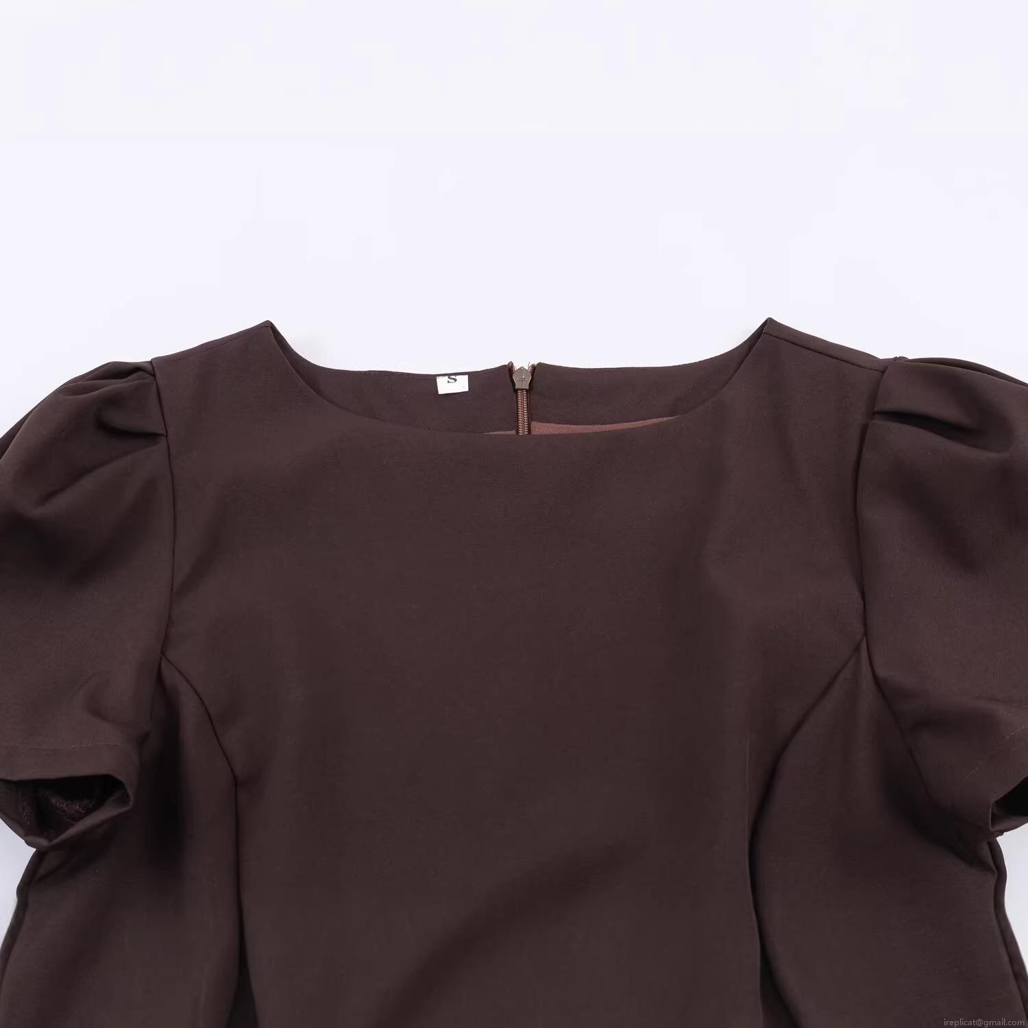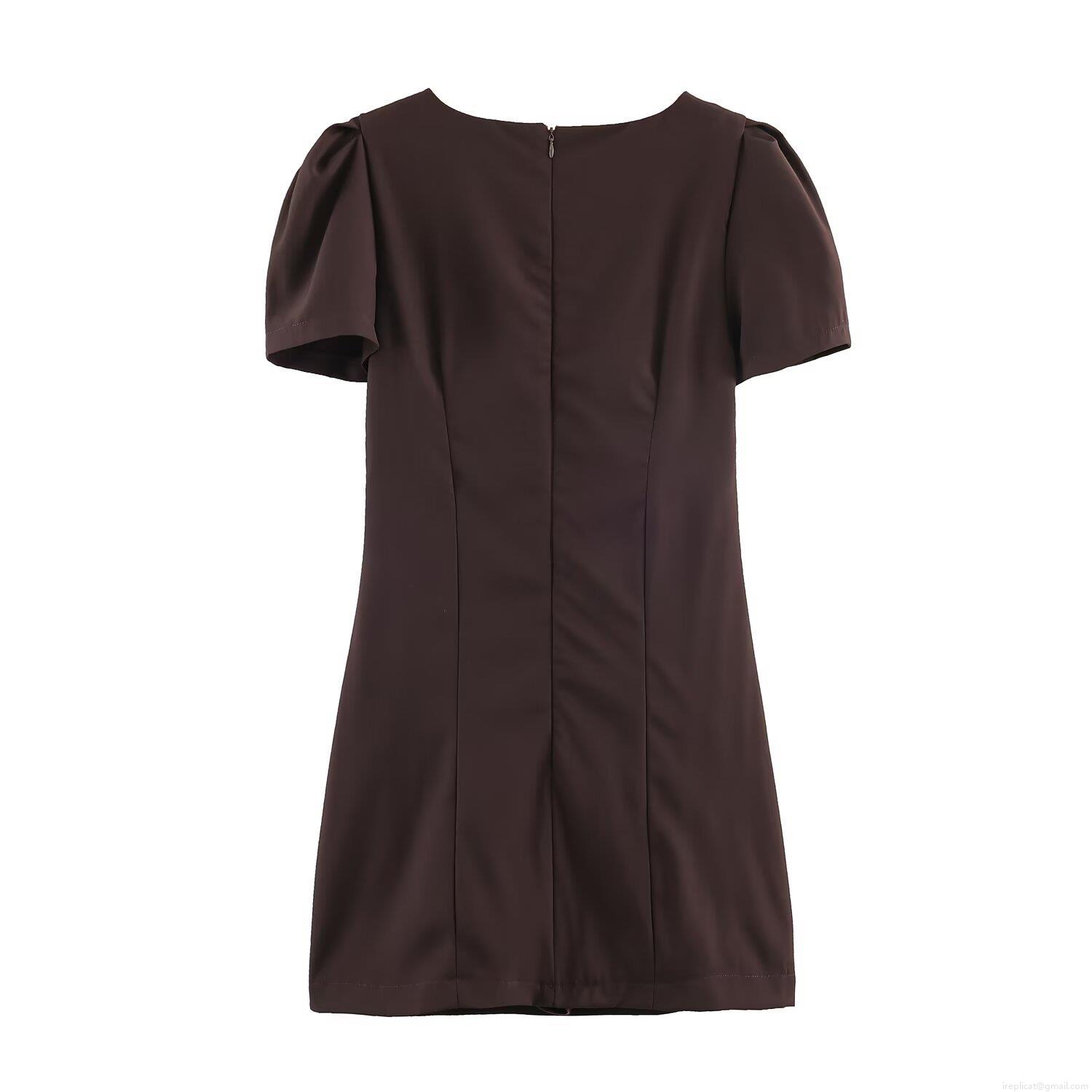 • Women's Fashion Coffee Puff Sleeve Mini Dress Solid Color Pleated Slim Fit Bodycon Dress With Pockets Elegant Party Evening Short Dress For Ladies