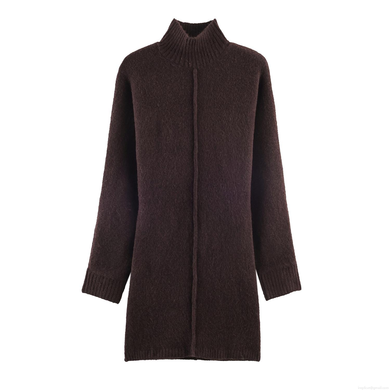 • Women's Fashion High Neck Long Sleeve Knit Mini Dress Casual Solid Color Ribbed Soft Polyester Blend Sweater Dress For Spring Autumn Daily