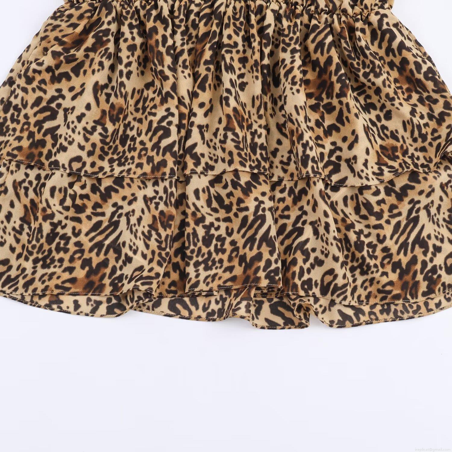 Women's Fashion Leopard Print Chiffon Dress V-Neck Long Sleeve Layered Ruffle Mini Dress High Waist Casual Party Dating Fashion Outfit