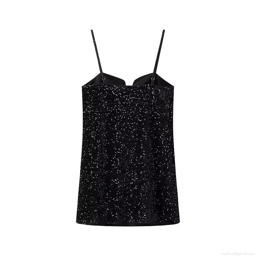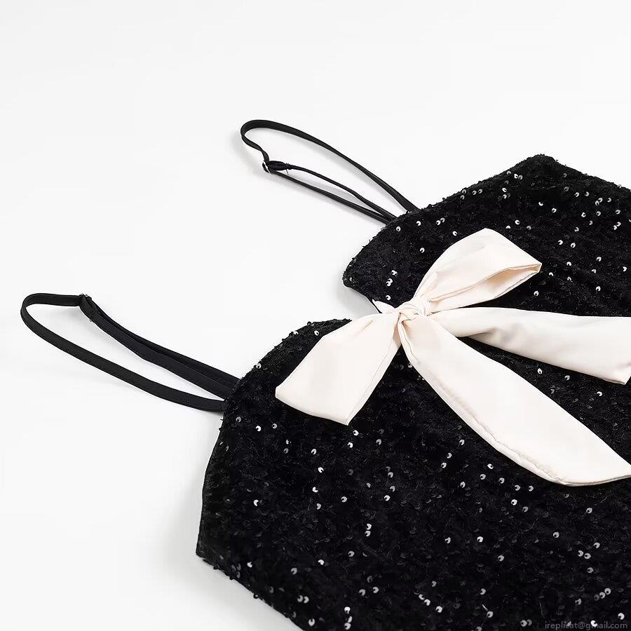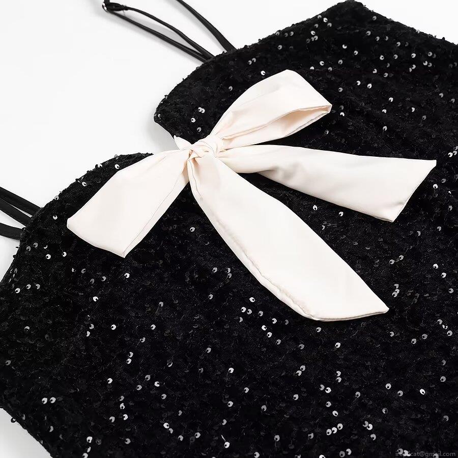 Women's Fashion Sequin Cami Mini Dress With Satin Bow Sparkling Sleeveless Camisole Bodycon Dress For Party Nightclub Cocktail Evening Ladies Streetwear