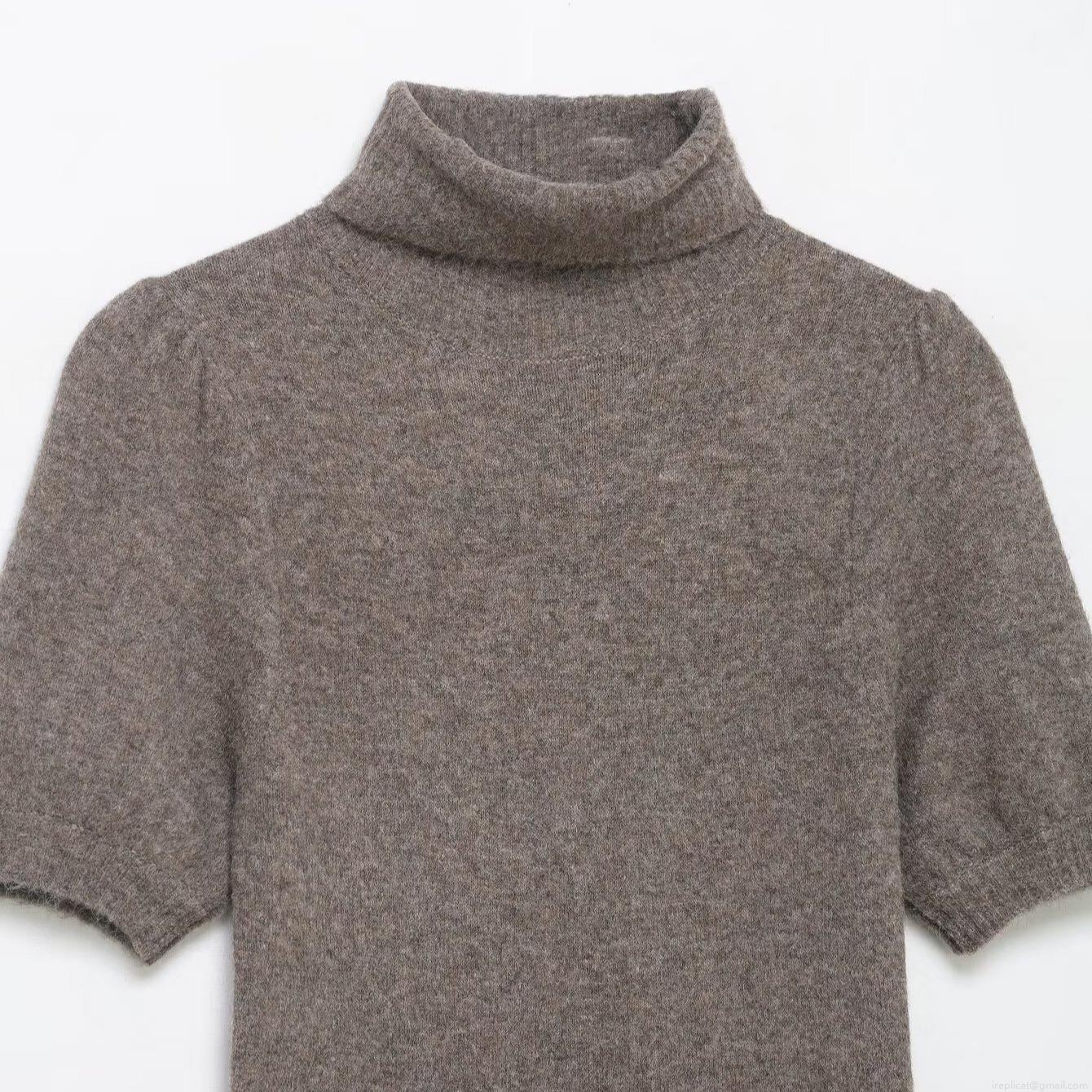 Solid Color, Puff Sleeves, Ribbed Knit, Turtleneck