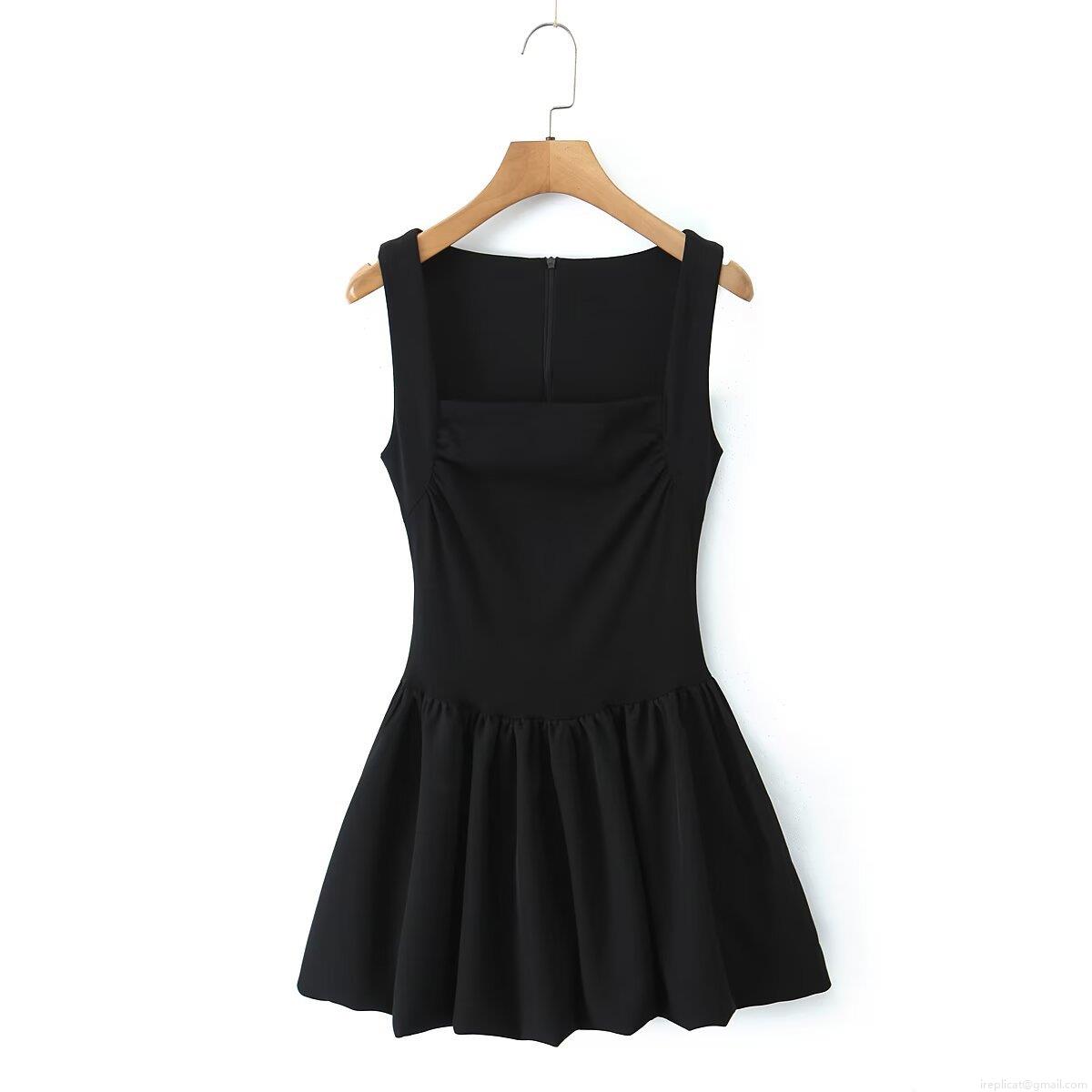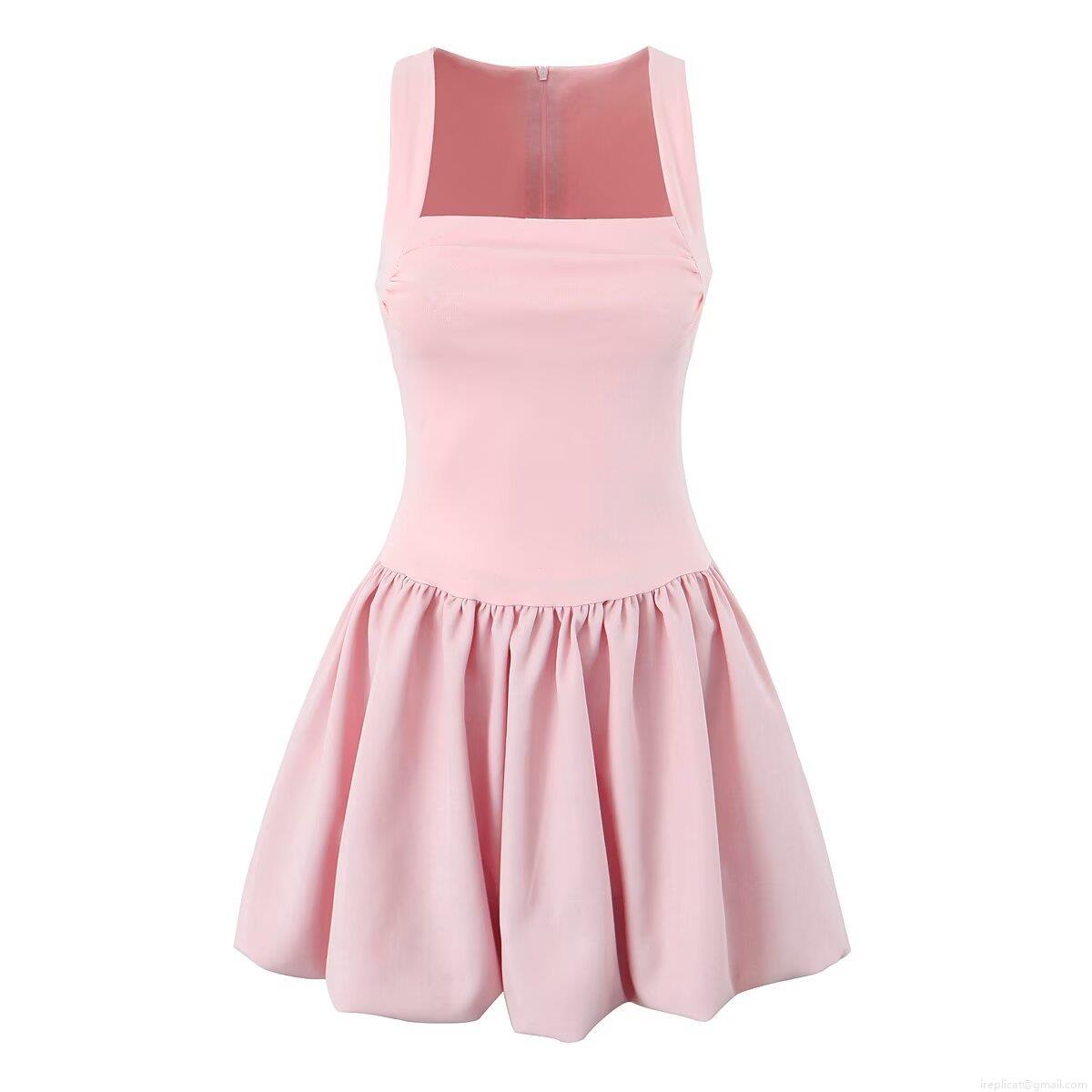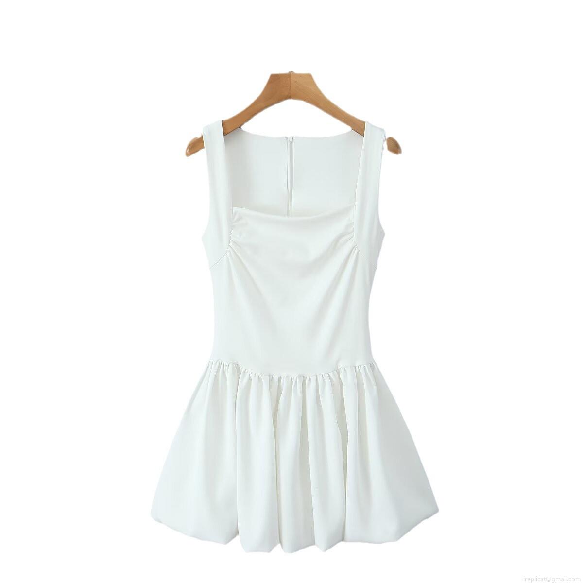 • Women's Fashion Square Neck Sleeveless Mini Dress Solid Color Pleated A-Line Summer Streetwear Party Knitted Polyester Short Dress For Lady