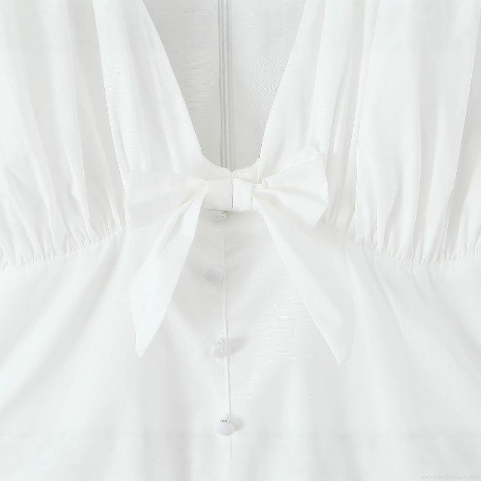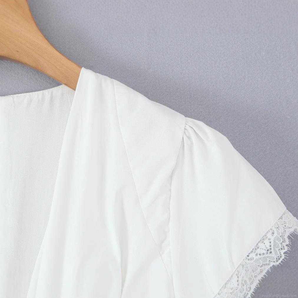 • Women's Fashion White Cotton Lace Splicing V-Neck Dress With Bow and Buttons Short Sleeve Slim Fit Summer Mini Dress For Party Dating