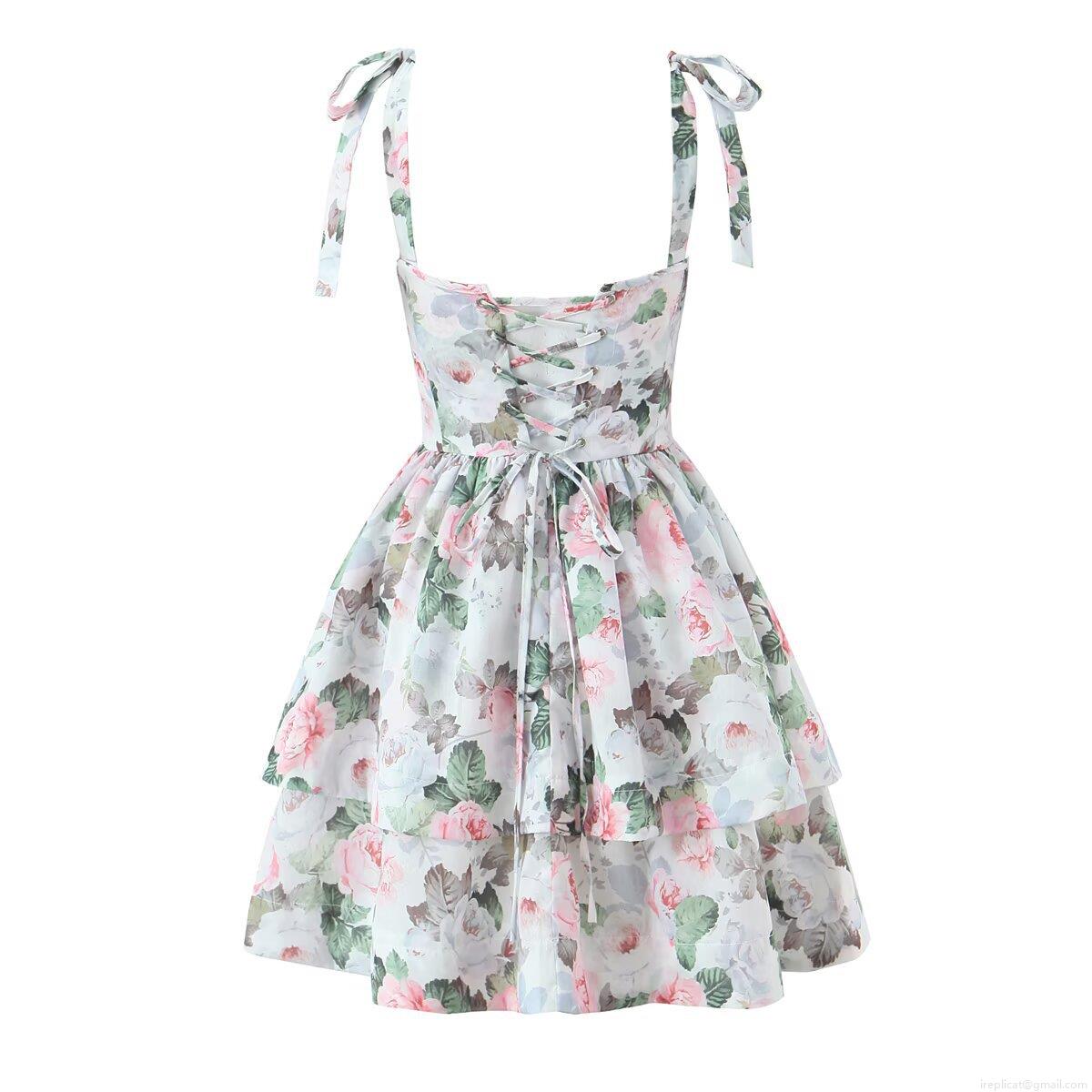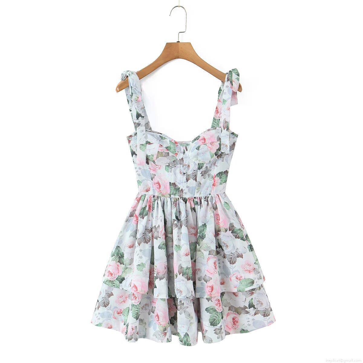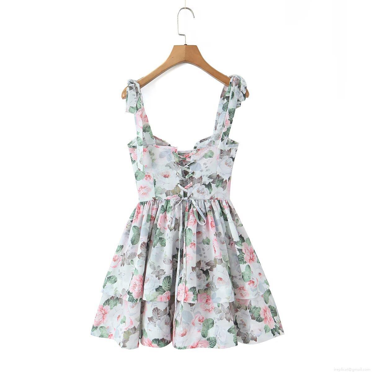 • Women's Floral Print Cami Mini Dress Sexy Sweetheart Neck Layered Ruffle Cake Dress Backless Lace Up Lolita Style Sweet Summer Sundress For Women Party Vacation