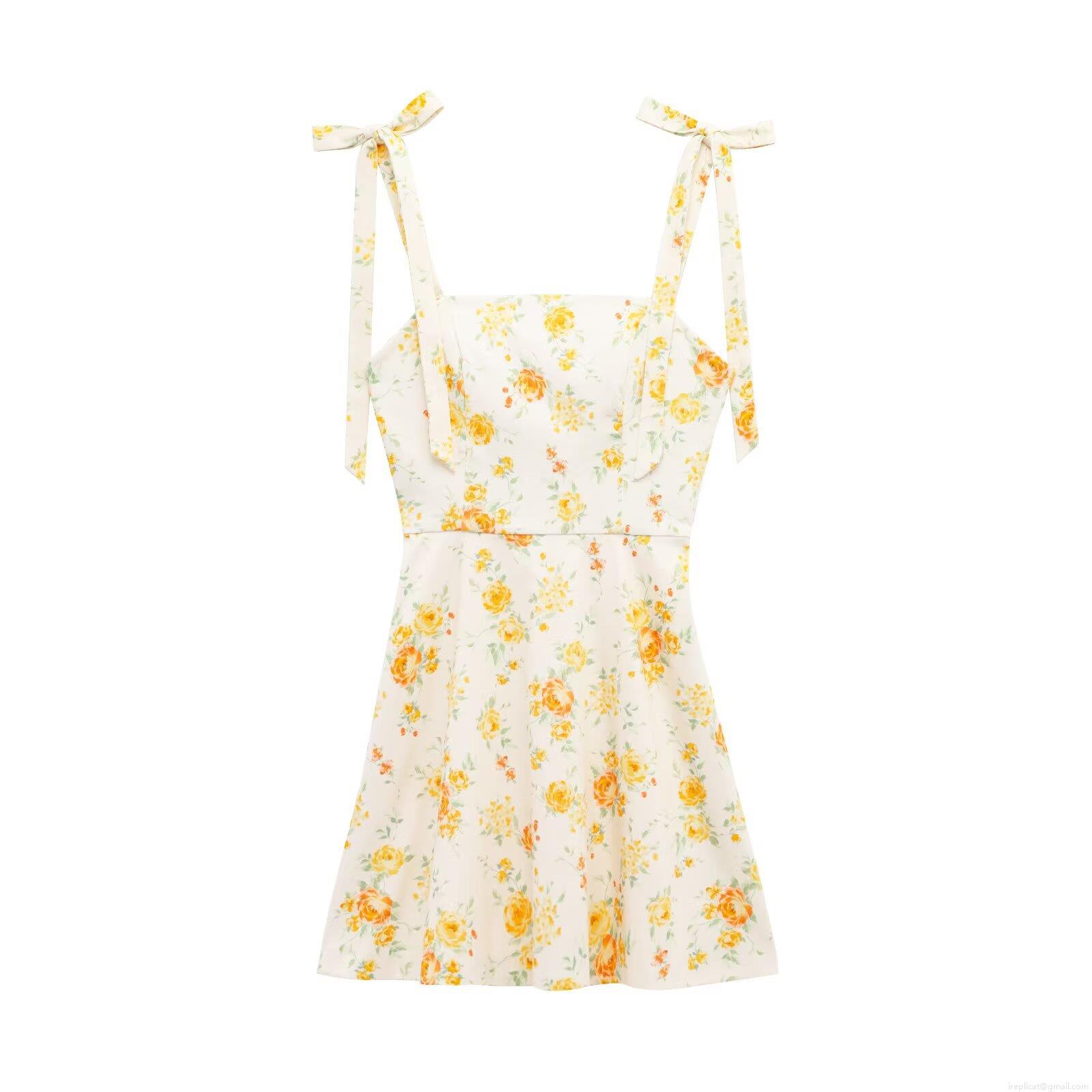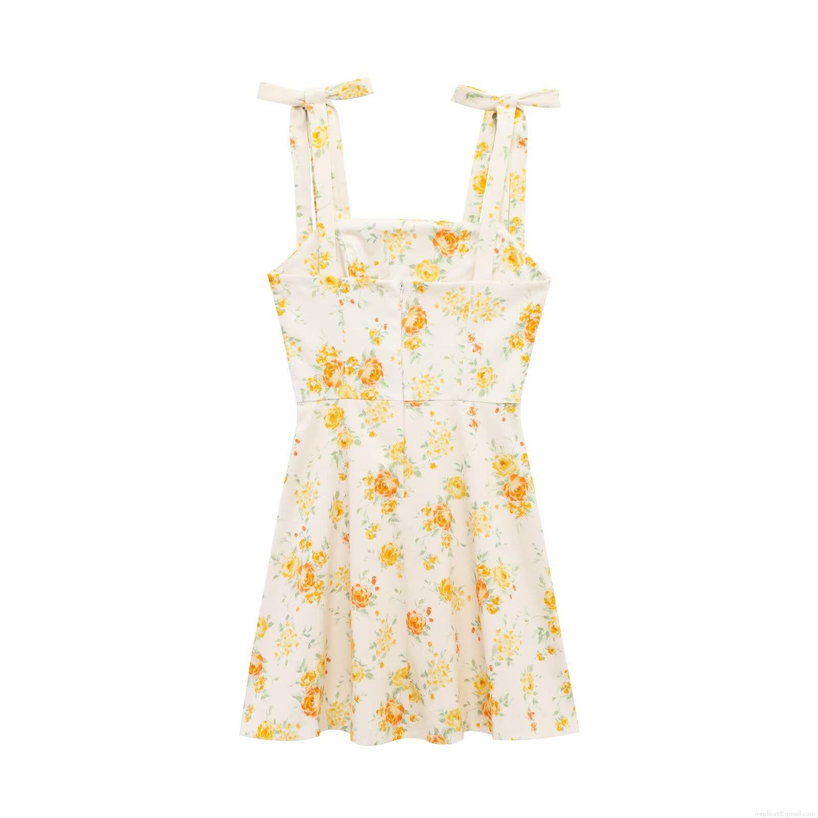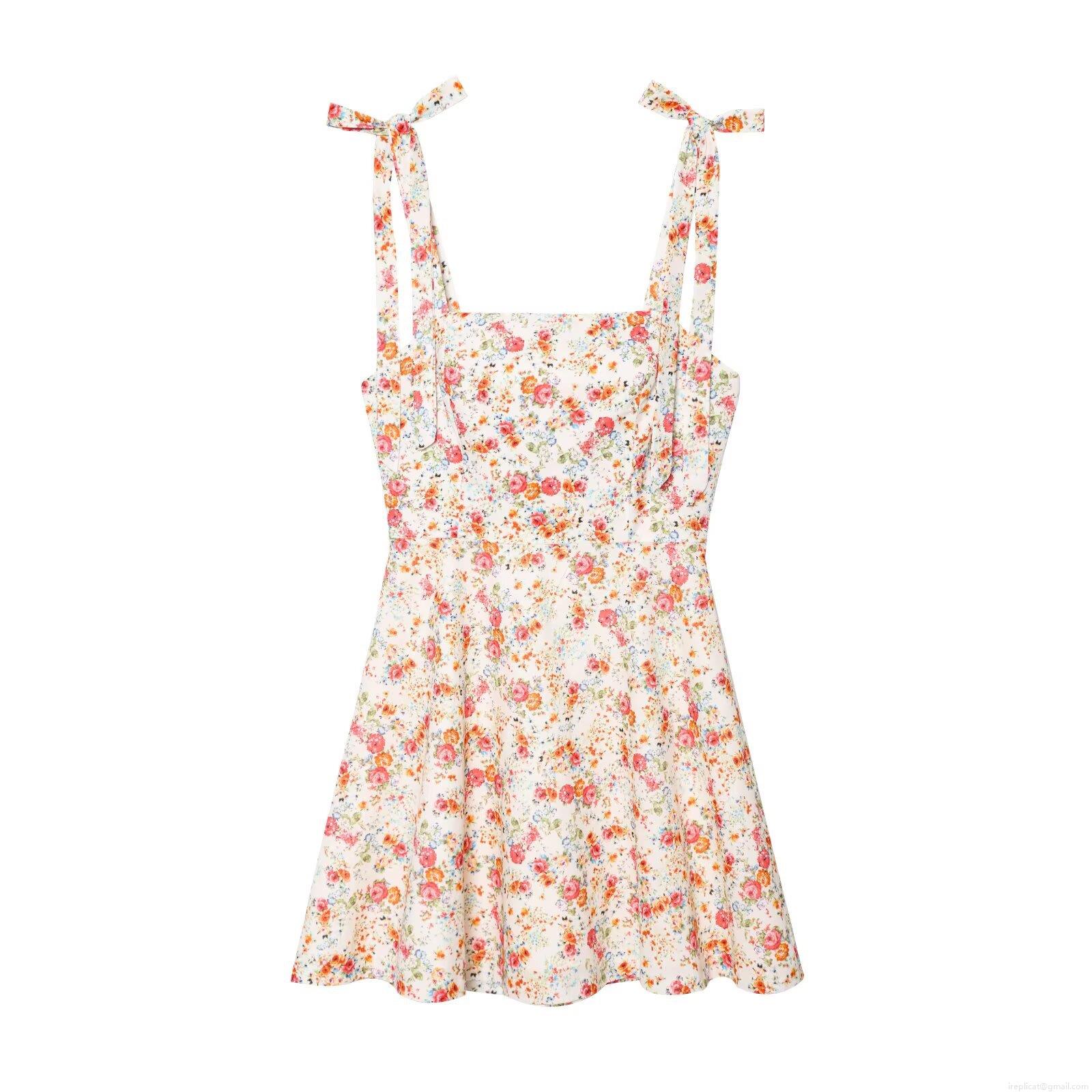 • Women's Floral Print Cami Mini Dress With Bow Tie Straps Square Neck Polyester Spandex Slim Fit Back Zipper A-Line Summer Vacation Beach Dress