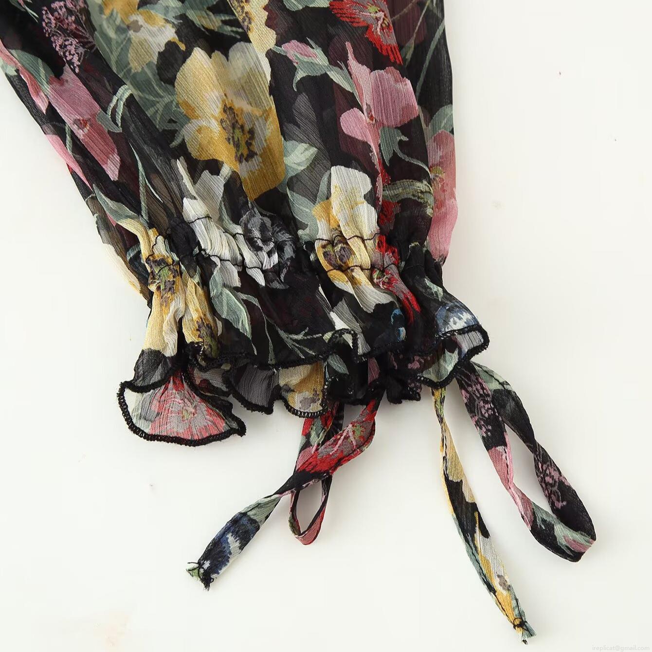 • Women's Floral Print Chiffon Mini Dress Long Sleeve Ruffle Neck Tie Waist A-Line Elegant Vacation Dress For Ladies