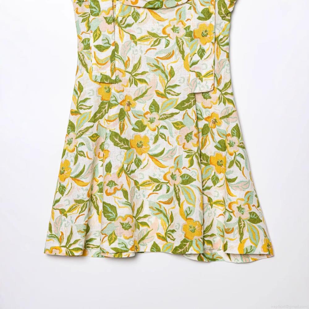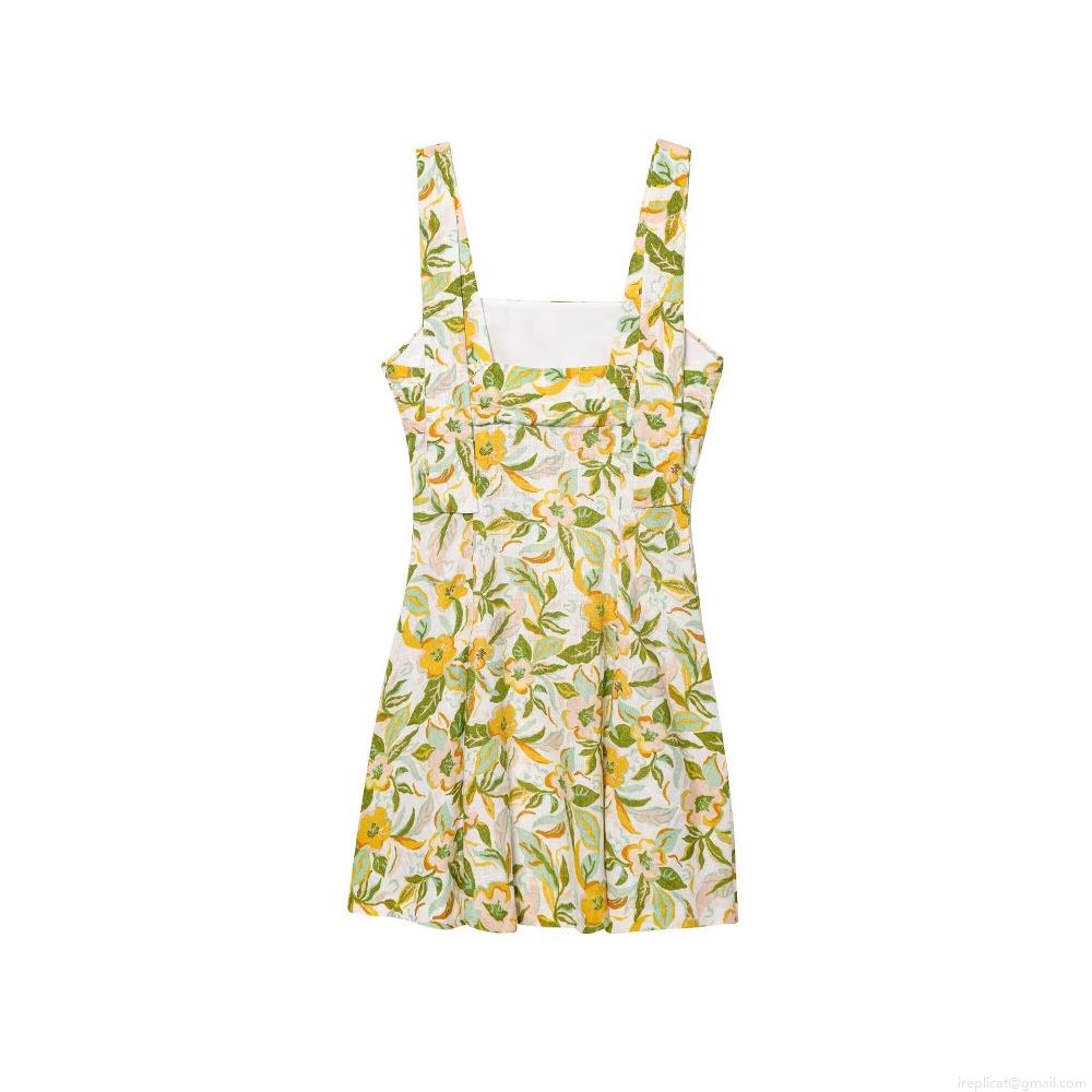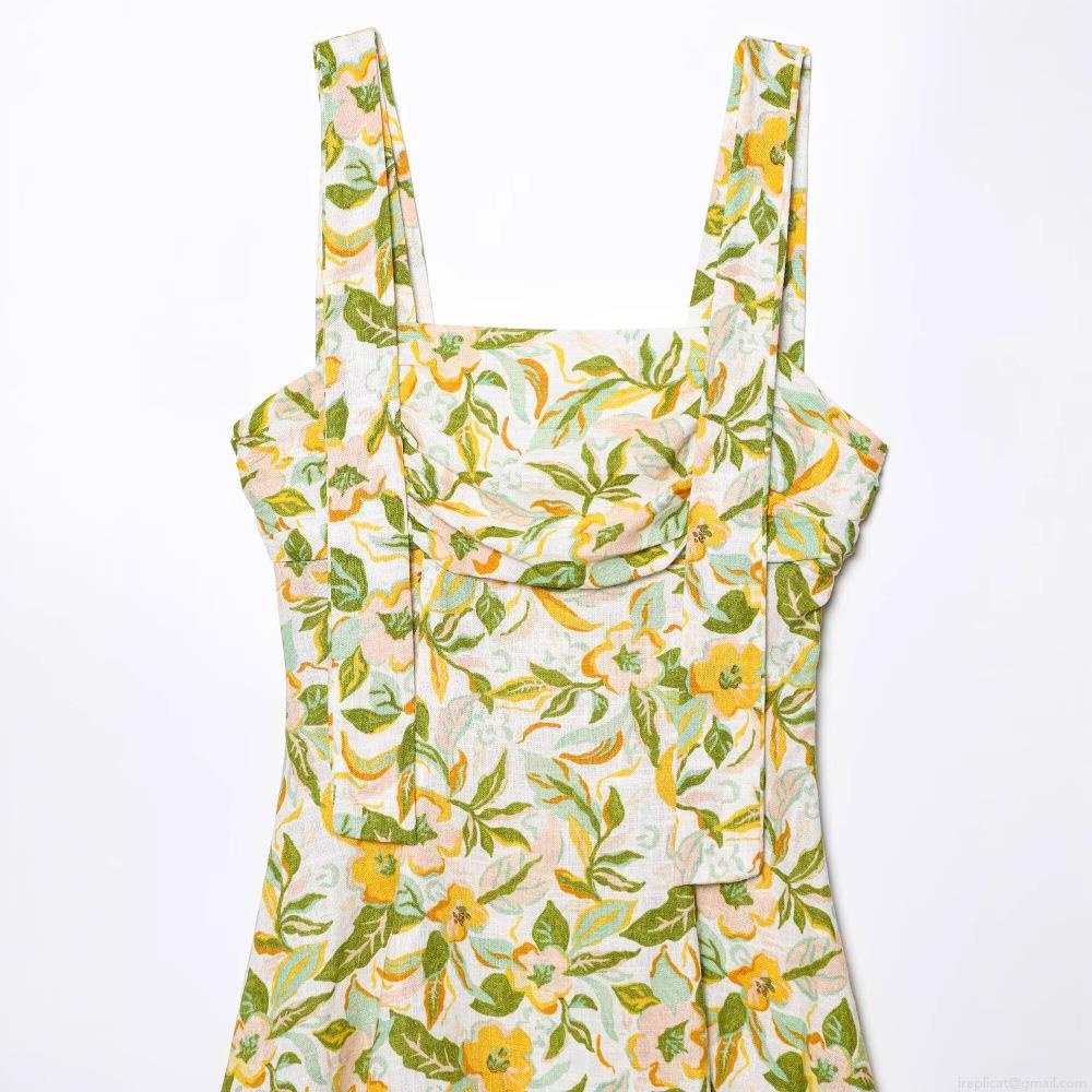 • Women's Floral Print Linen Blend Mini Dress Square Neck Sleeveless A-Line Sling Sundress Casual Elegant Short Dress For Summer Vacation