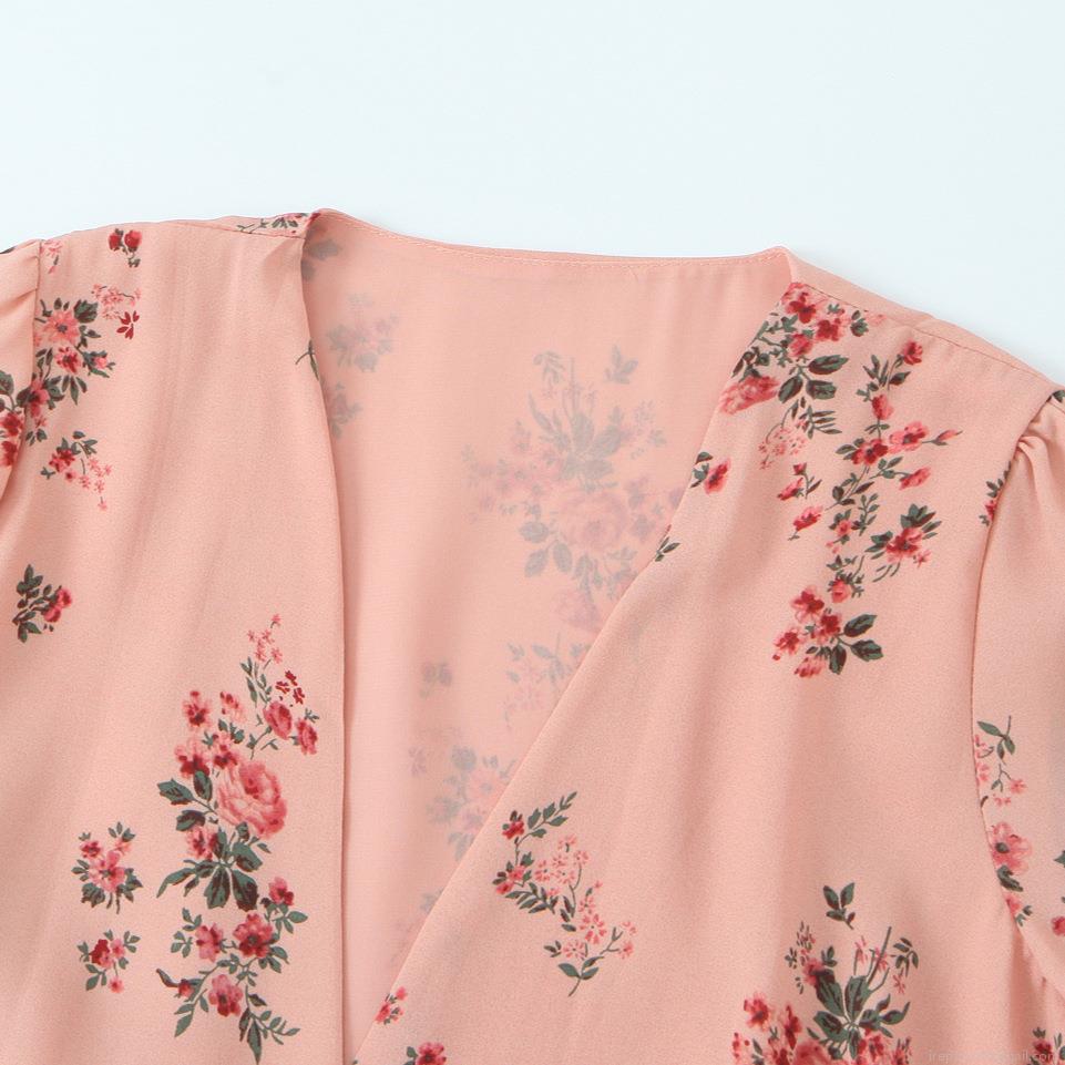 • Women's Floral Print Wrap Dress V-Neck Seven-Quarter Flounce Sleeve Chiffon Polyester A-Line Mini Dress With Waist Tie For Spring Summer Casual Streetwear