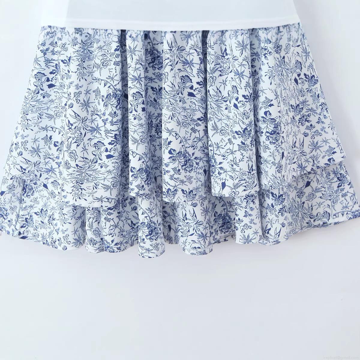 • Women's French Floral Print V-Neck Mini Dress Puff Sleeve High Waist Ruffle Hem Polyester Sweet Vacation Style A-Line Flowy Sundress
