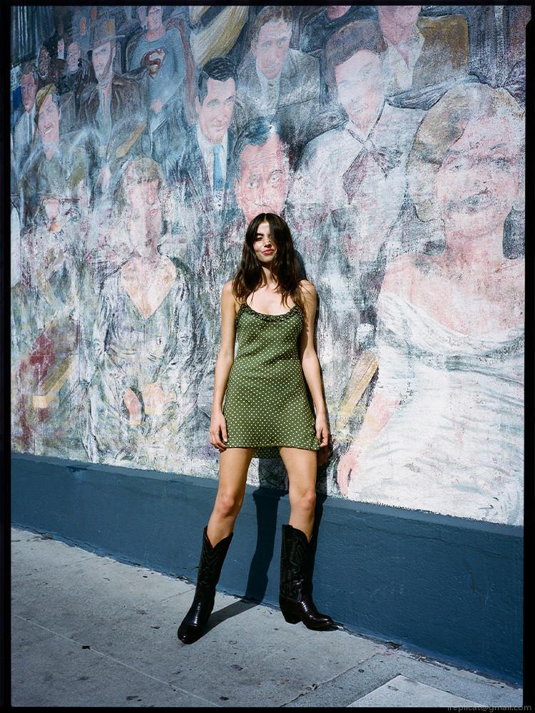 • Women's French Polka Dot Camisole Dress Ruffle V-Neck Slim Fit Mini Dress Green Cotton Blend Spaghetti Strap Retro Vacation Spice Girl Sundress