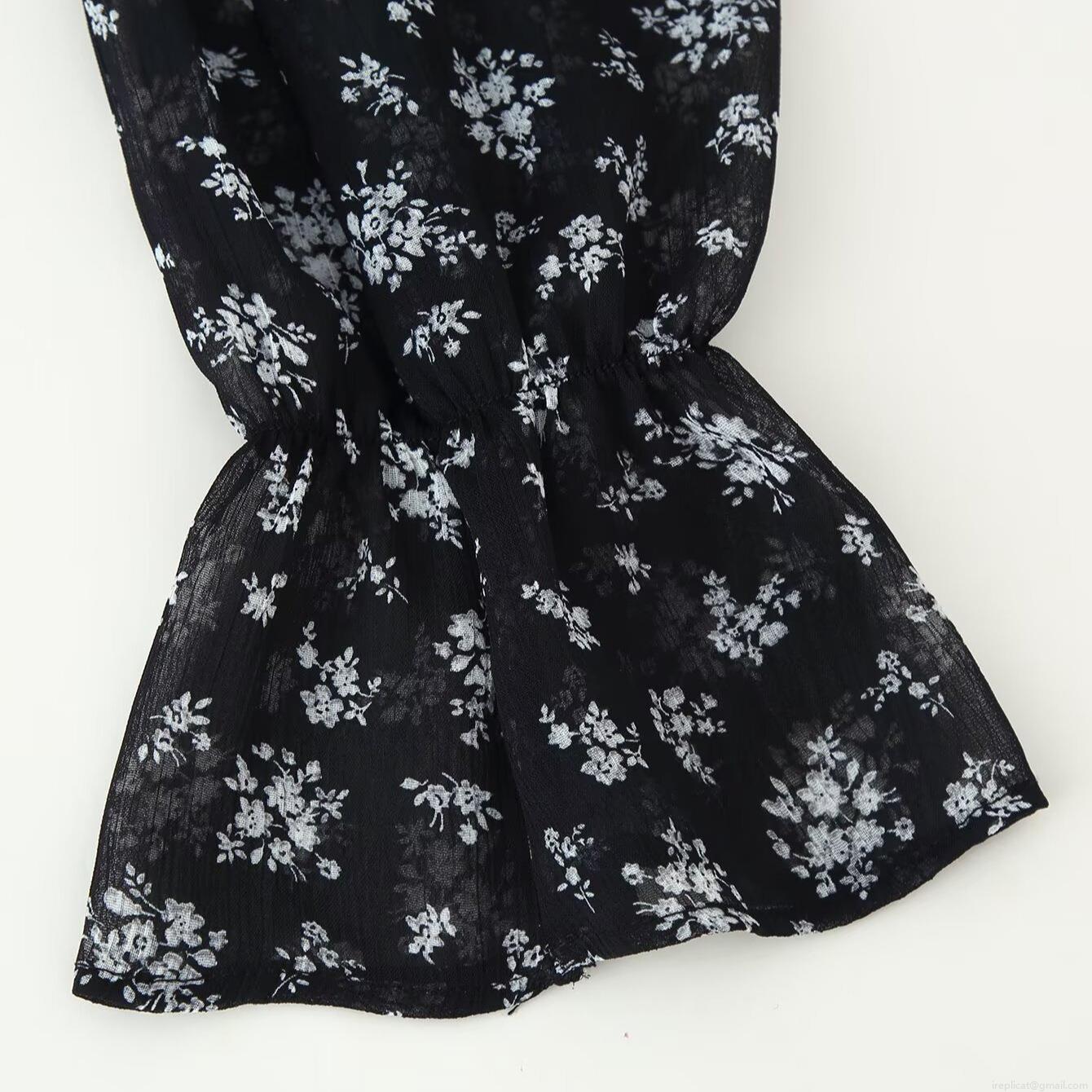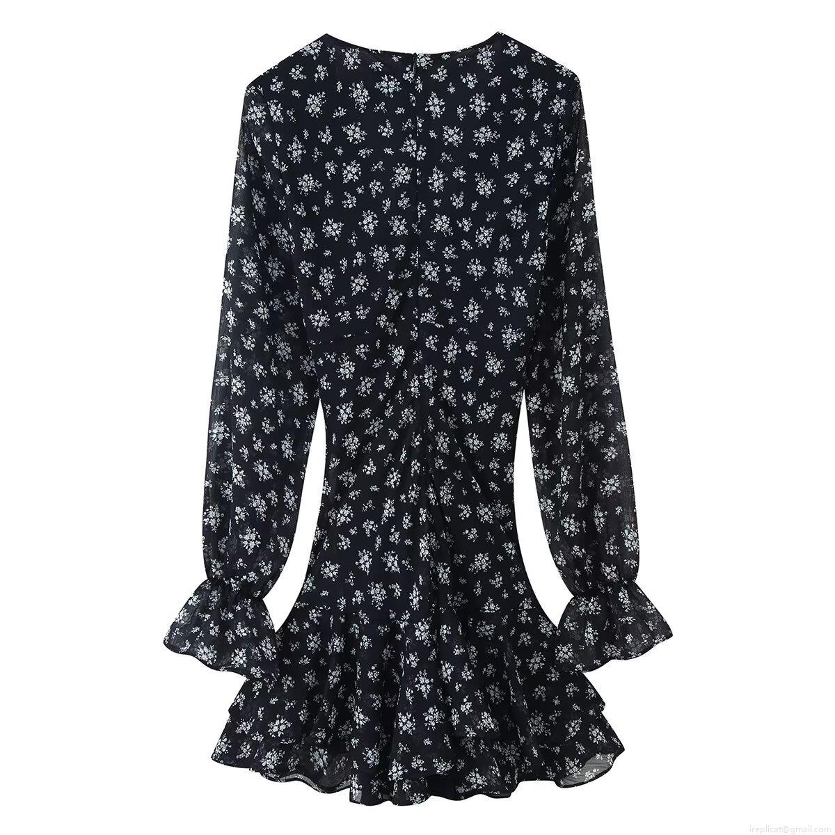 • Women's French Retro Floral Chiffon Dress Deep V-Neck Long Sleeve Ruffle Tiered Hem Lacing Elegant Mini Dress For Vacation Party