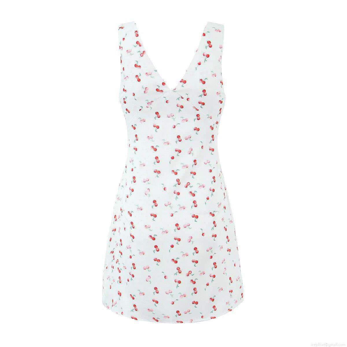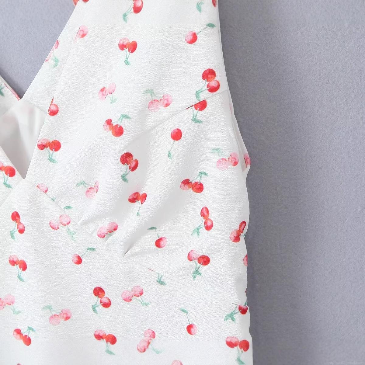 Fruit, Pleats, Printing, Backless, Cherry Print
