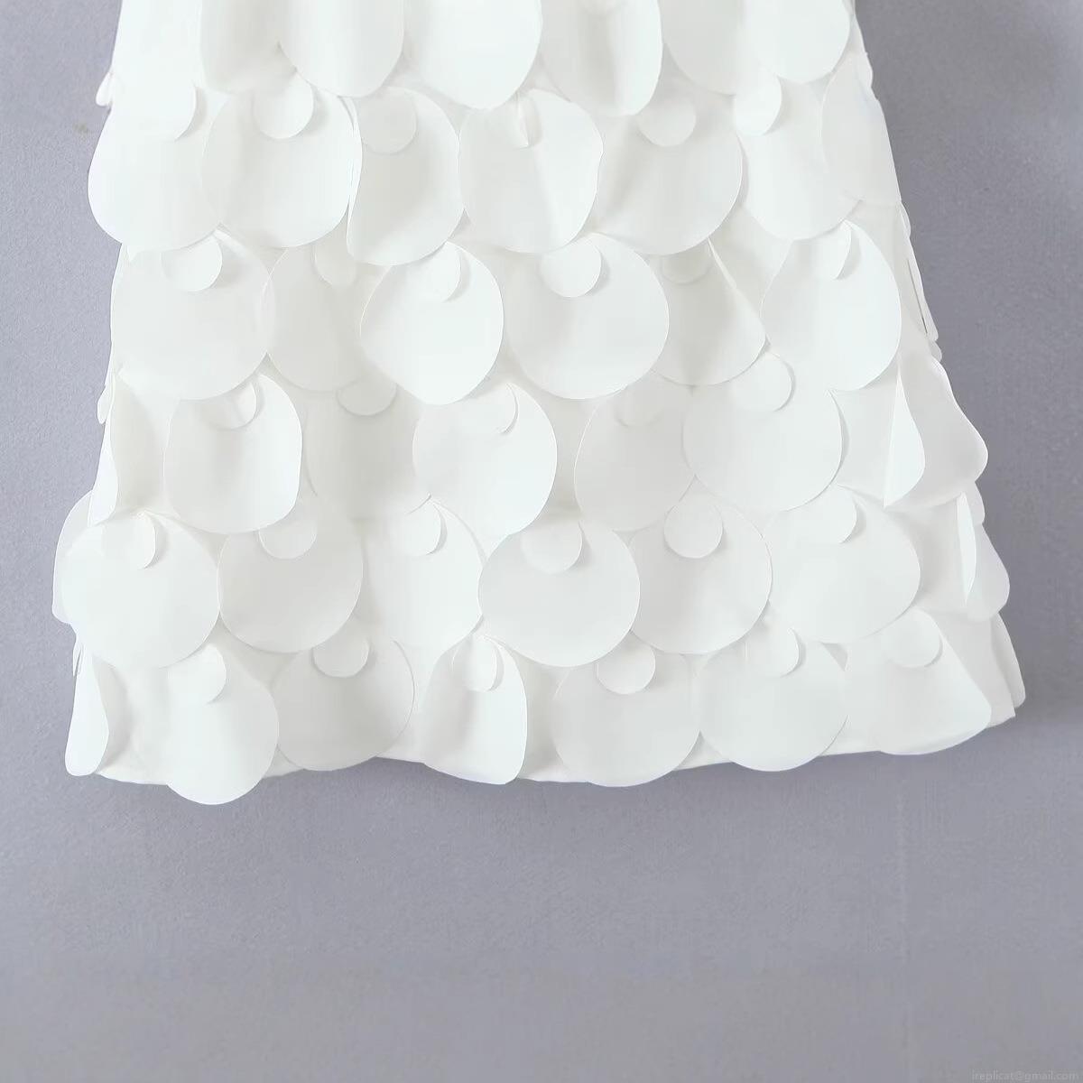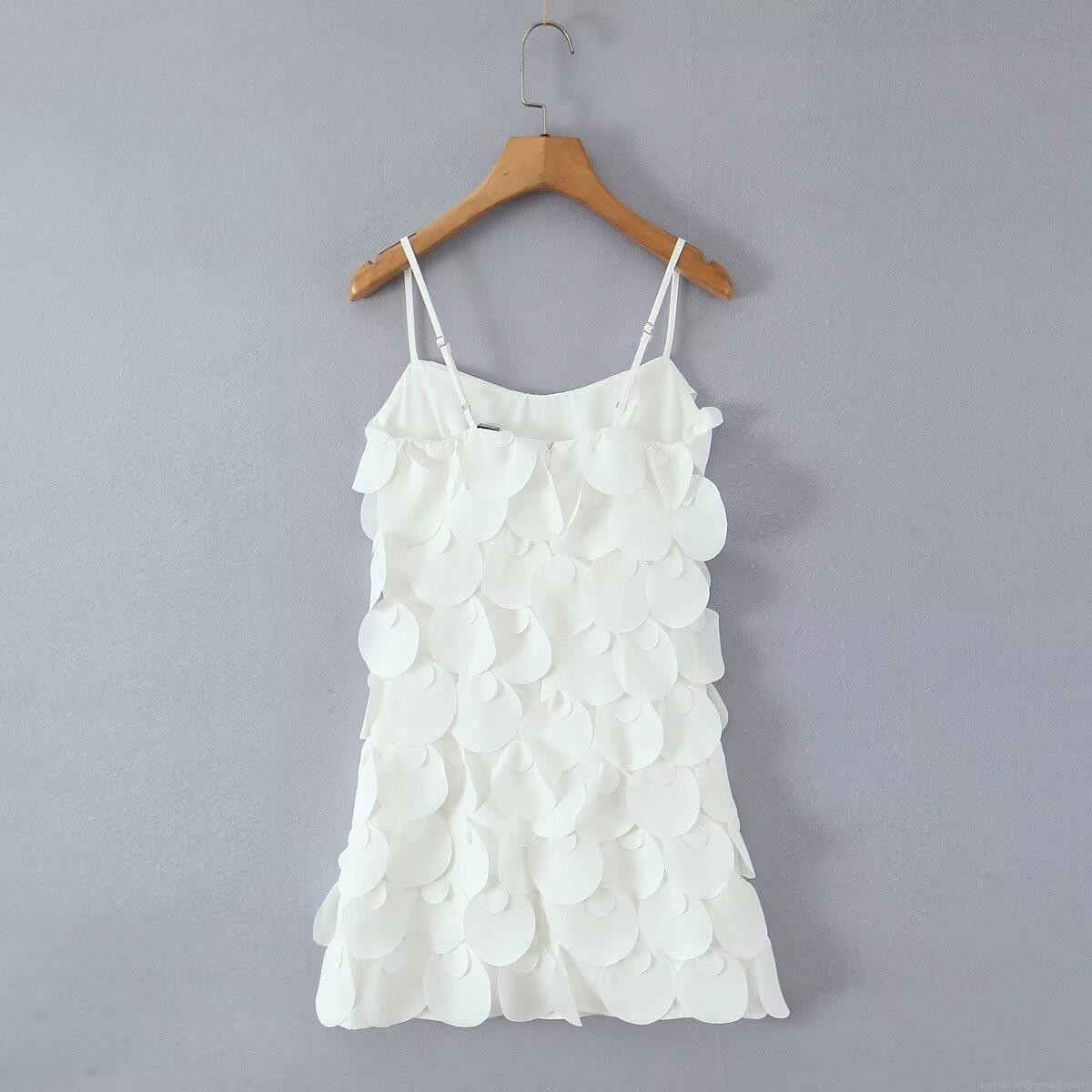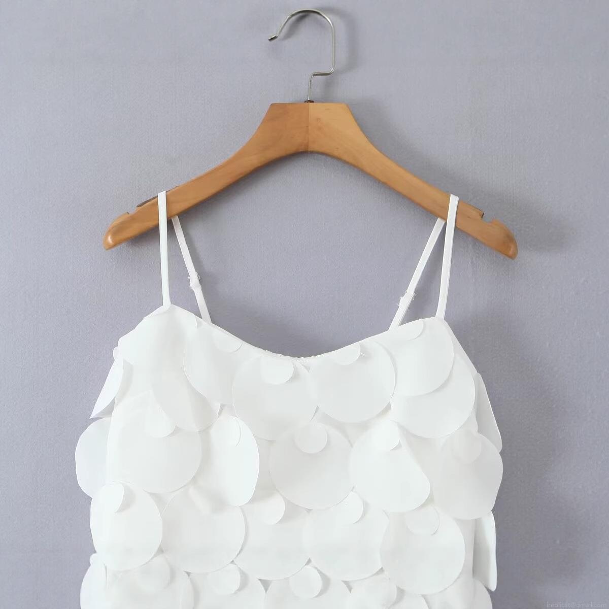 • Women's French Style White Fish Scale Suspender Dress Elegant Polyester Circular Sequin Applique Sleeveless U-Neck Mini Dress Sexy Back Zipper Summer Party Wedding Cocktail Club Evening Dress