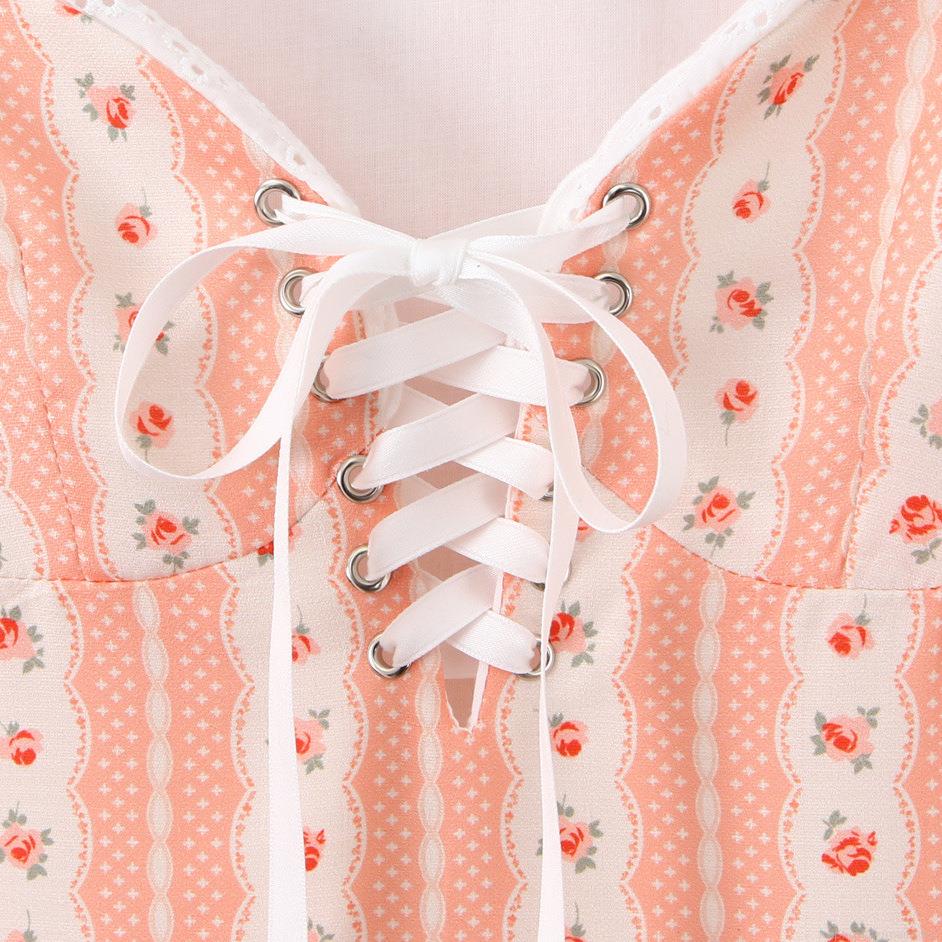 Stripe, Polka Dots, Floral Pattern, Ruffles, Lace Trim, Lace, Puff Sleeves