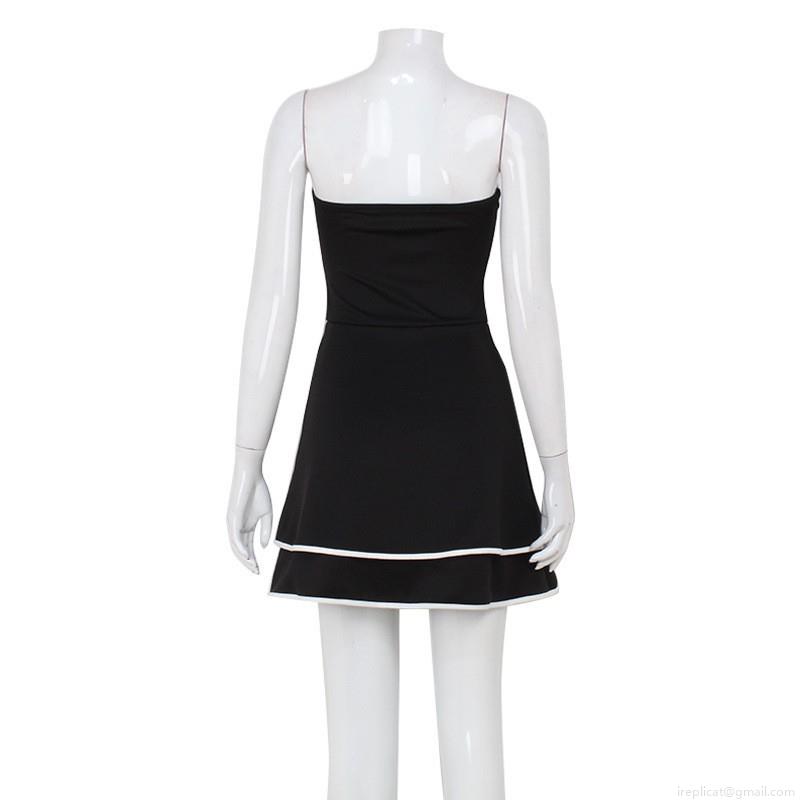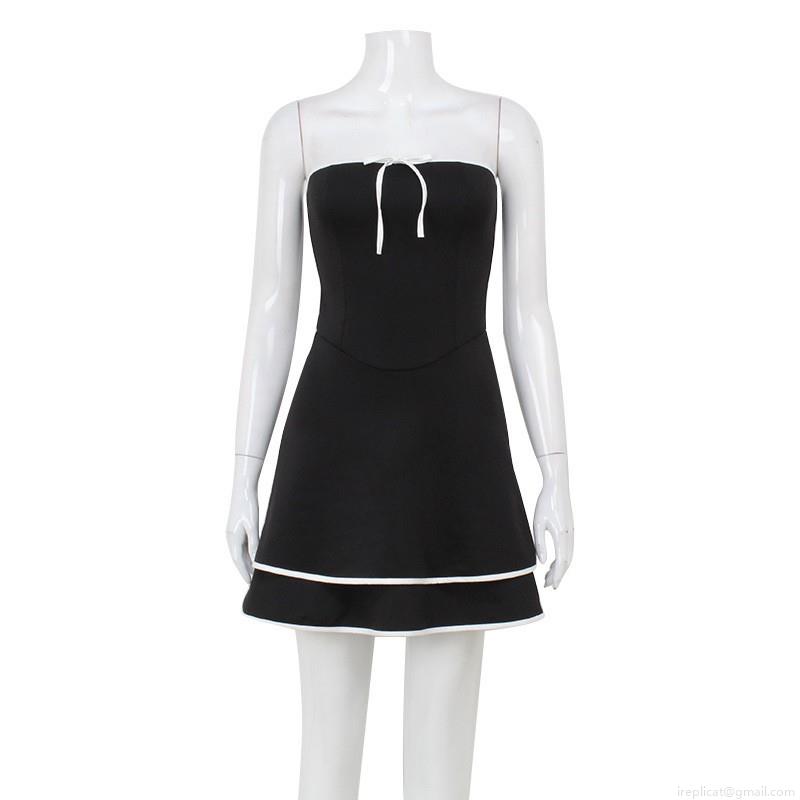 Solid Color, Color Blocking, Ribbon Bow, White Piping, Double-layered Ruffles, Off-the-shoulder Tube Top