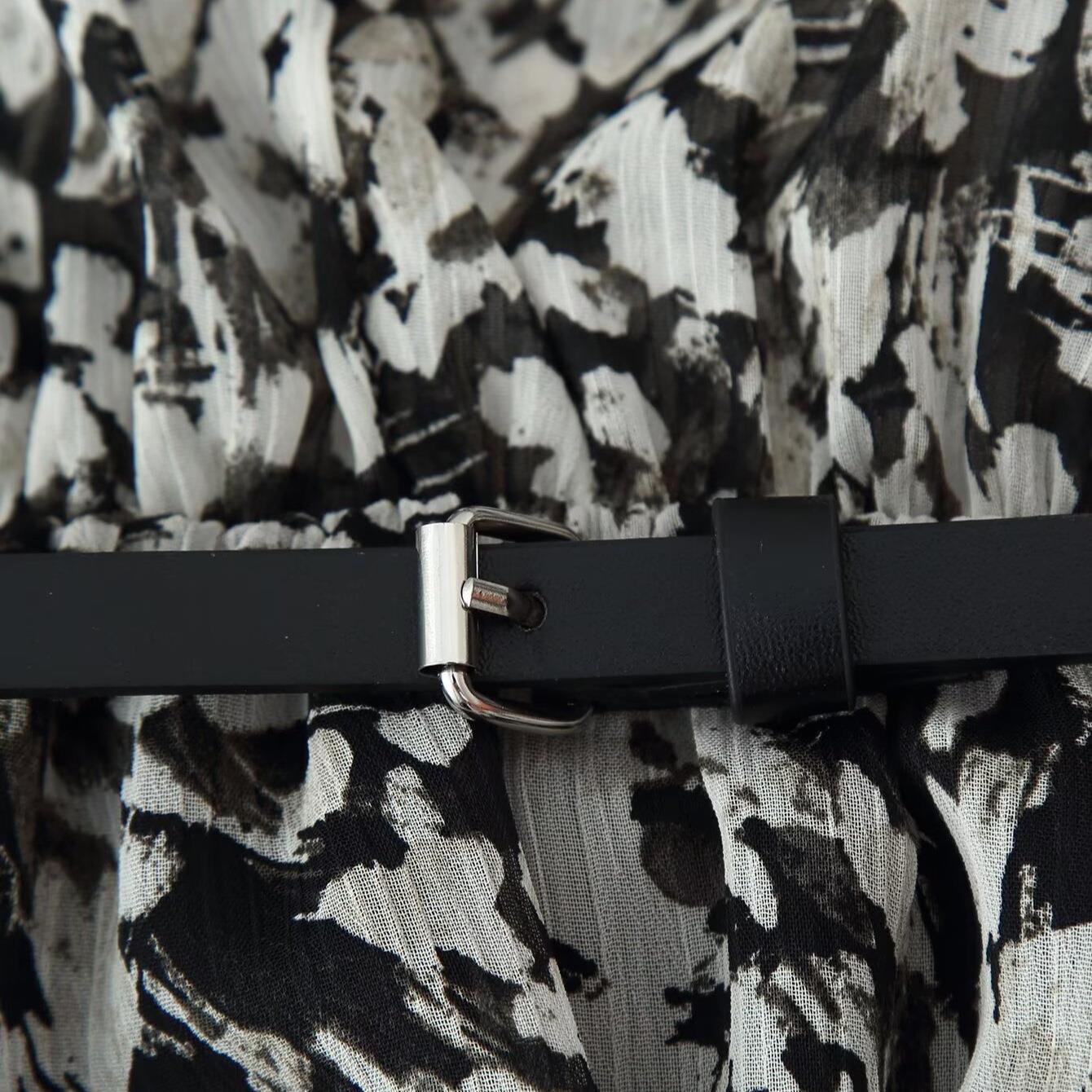 Floral Pattern, Ruffles, Wrinkling, Belt, Elastic Waistband, Abstract Ink Wash Print