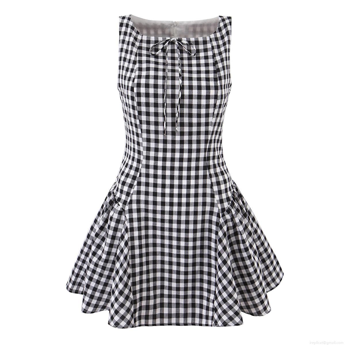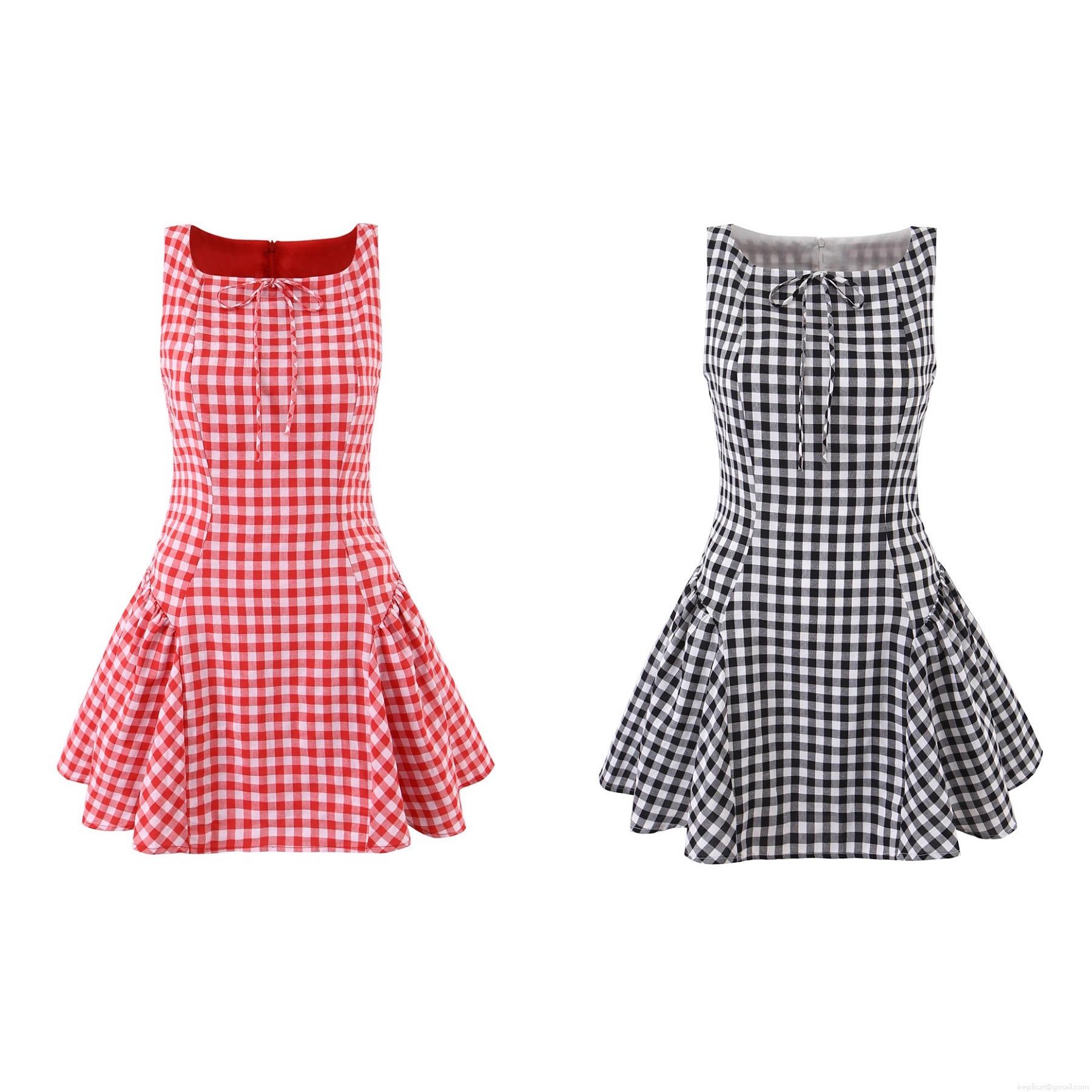 • Women's Gingham Plaid Sleeveless Mini Dress Sweet Square Neck Smocked Puffy A-Line Summer Dress With Bow Tie Cotton Blend Vintage Dress For Women Daily Party