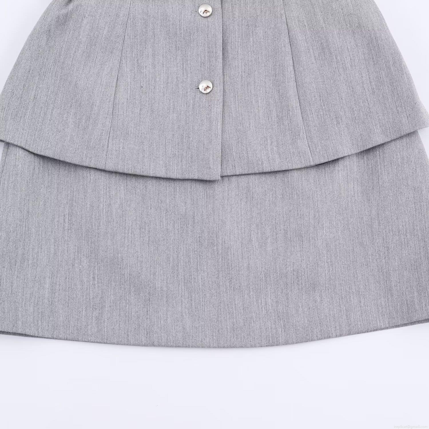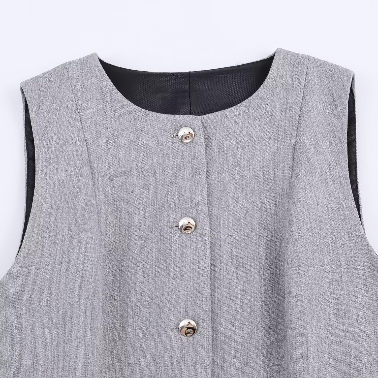 • Women's Grey Sleeveless Two-Piece Effect Mini Dress Office Style Woven Polyester Vest Dress With Belt And Metal Buttons Elegant Lady Outfit
