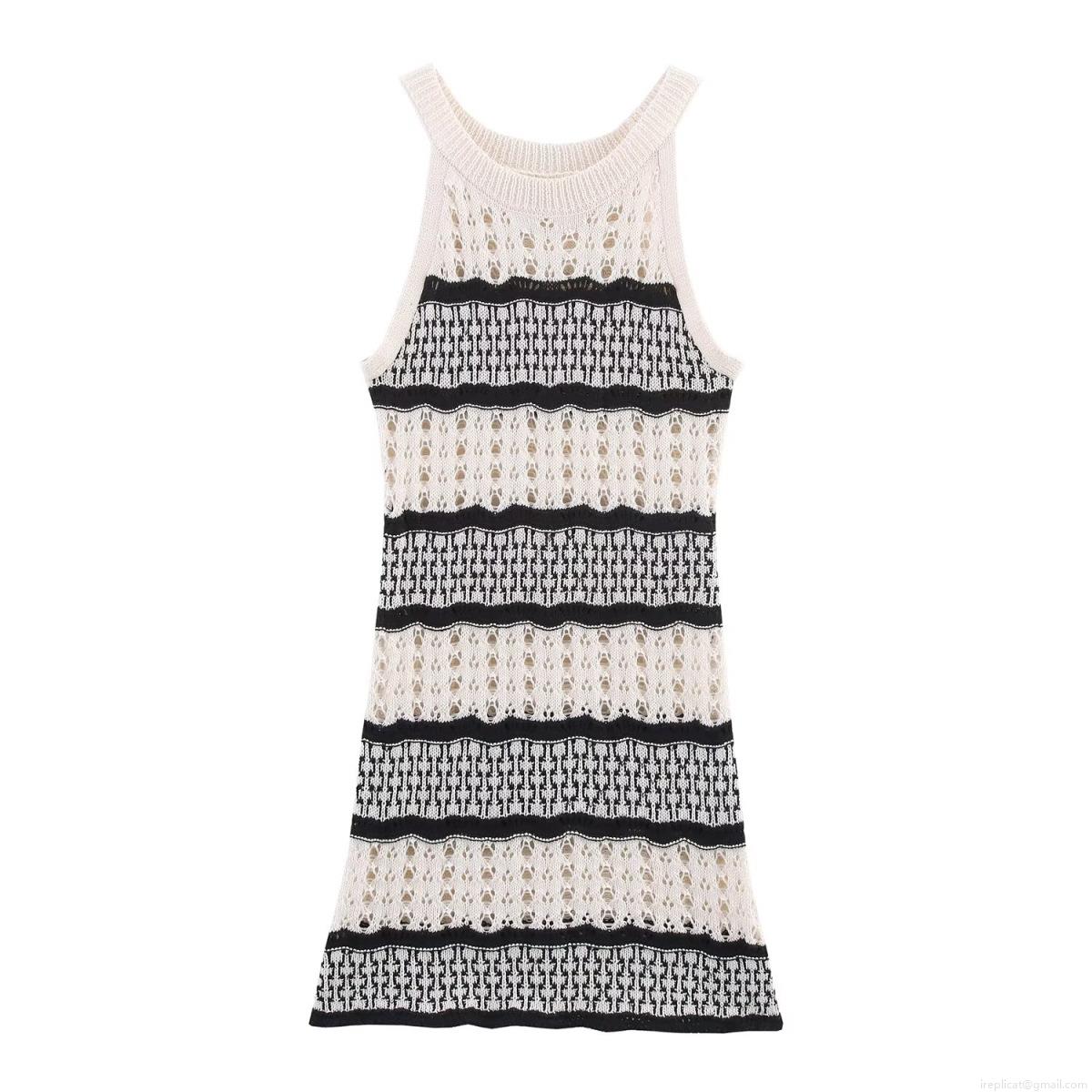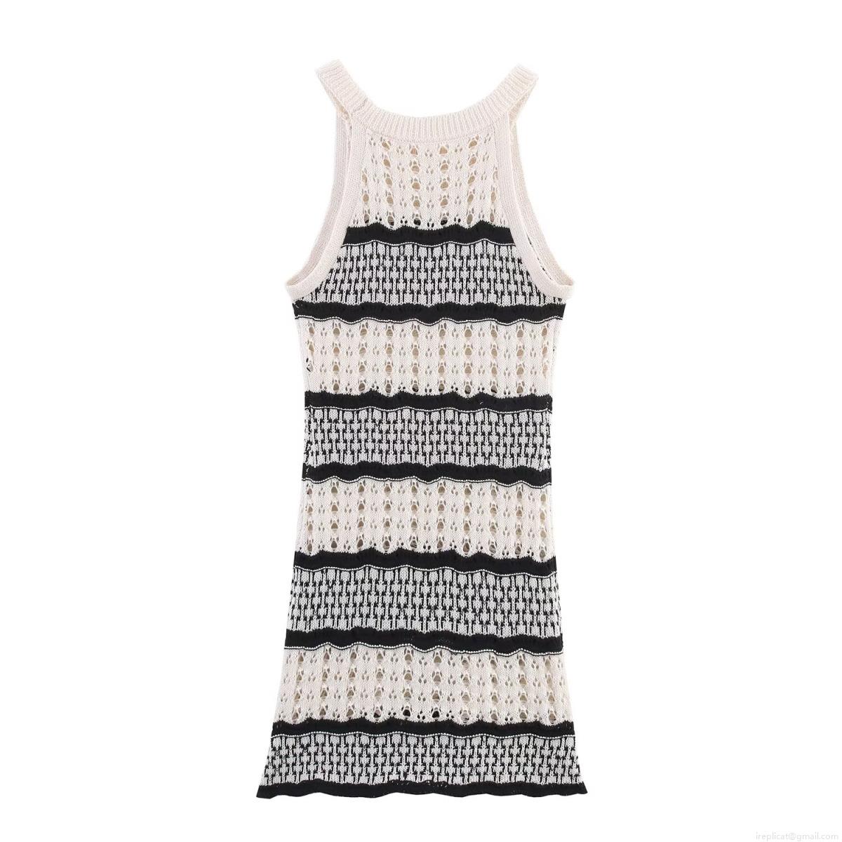• Women's Halter Neck Knitted Mini Dress Color Block Striped Hollow Out Sleeveless Bodycon Short Dress Summer Beach Vacation Streetwear