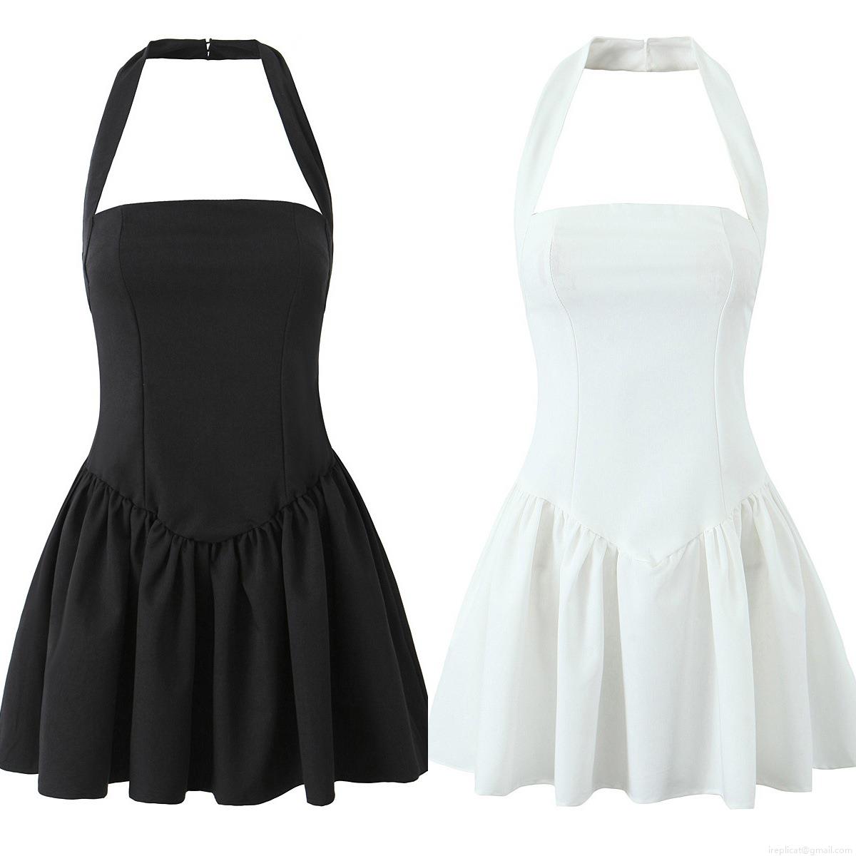 • Women's Halter Neck Mini Dress Sexy Backless Pleated A-Line Contrast Color Streetwear Style Sleeveless Polyester Cotton Short Dress For Summer Party