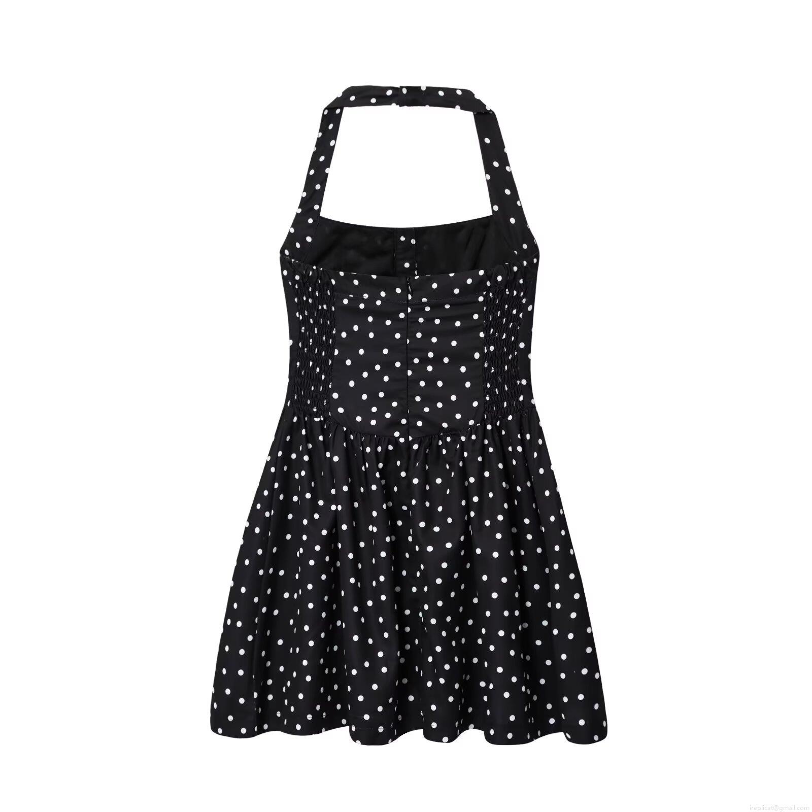 • Women's Halter Neck Polka Dot Mini Dress Summer Sleeveless Backless Sexy Short Dress With Button Decoration Fashion Streetwear Western Style Outfits