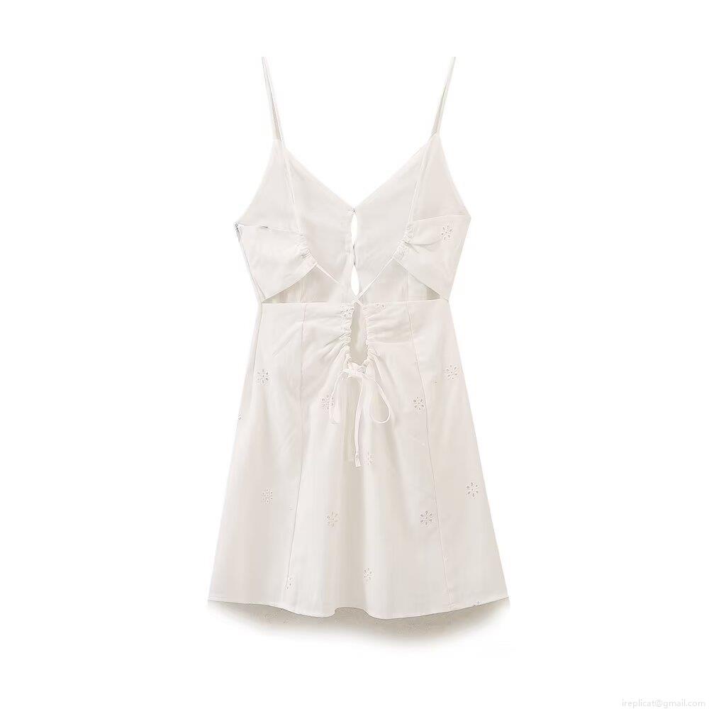 • Women's Hollow Out Embroidery Sling Mini Dress Cotton Blend V-Neck Button Slim Fit Sleeveless Backless Sundress For Summer Street Style