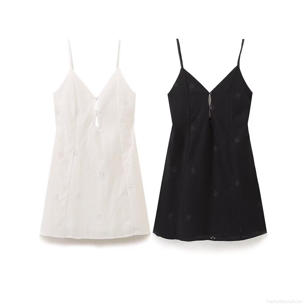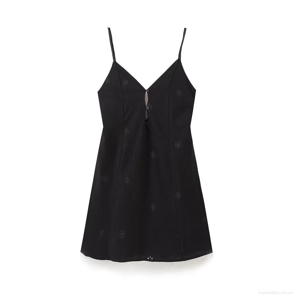 Solid Color, Buttons, V-neck, Backless, Openwork Embroidery, Floral Embroidery, Thin Straps