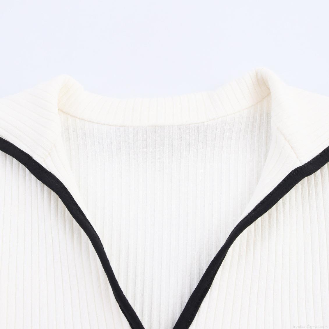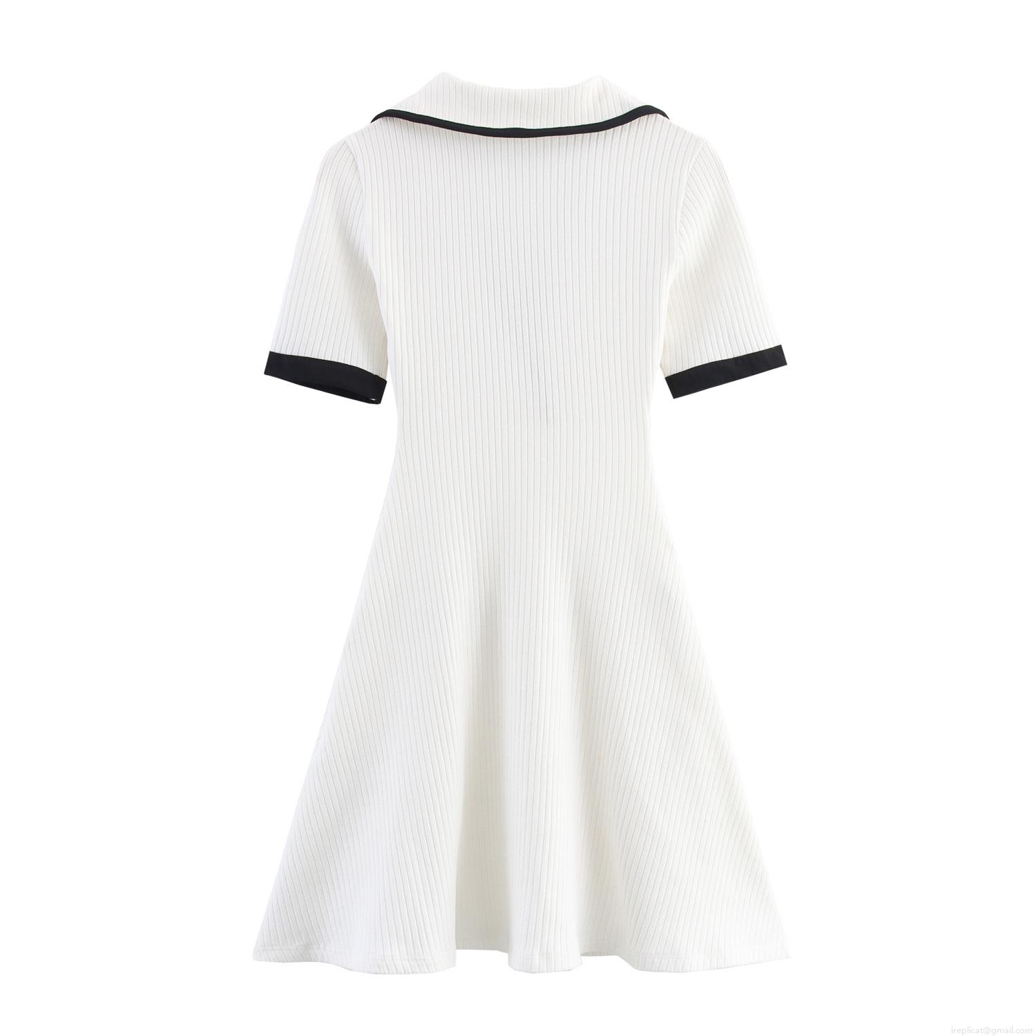 • Women's Knit Ribbed Short Sleeve Mini Dress Elegant Contrast Trim V Neck Polo Dress With Metal Buttons Slim Fit Bodycon Summer Dress For Ladies