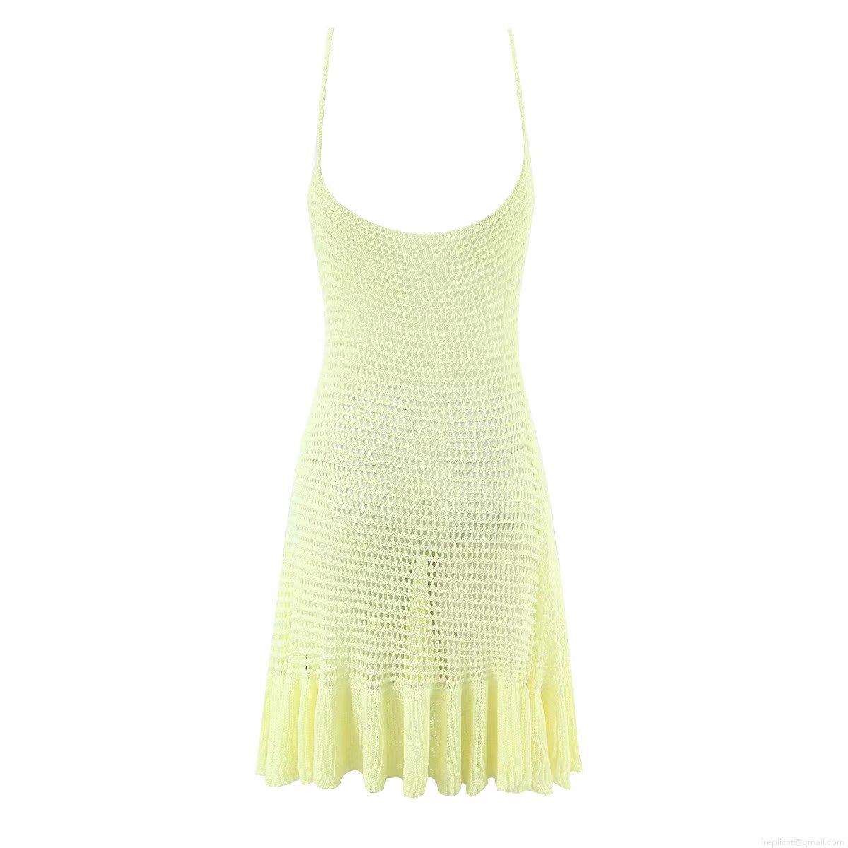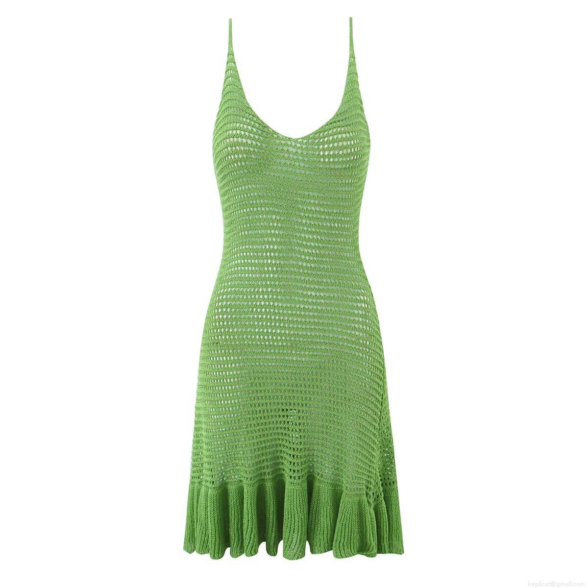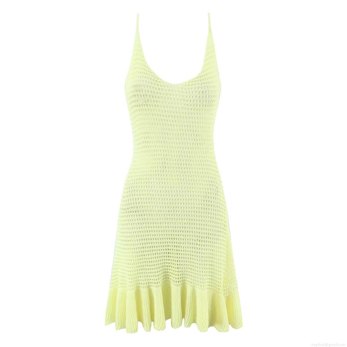 • Women's Knit Strap Dress Sexy V Neck Hollow Out Mesh Mini Ruffle Hem Sundress Summer Beach Vacation Sleeveless Pullover Slim Fit Casual Solid Color Polyester Dress
