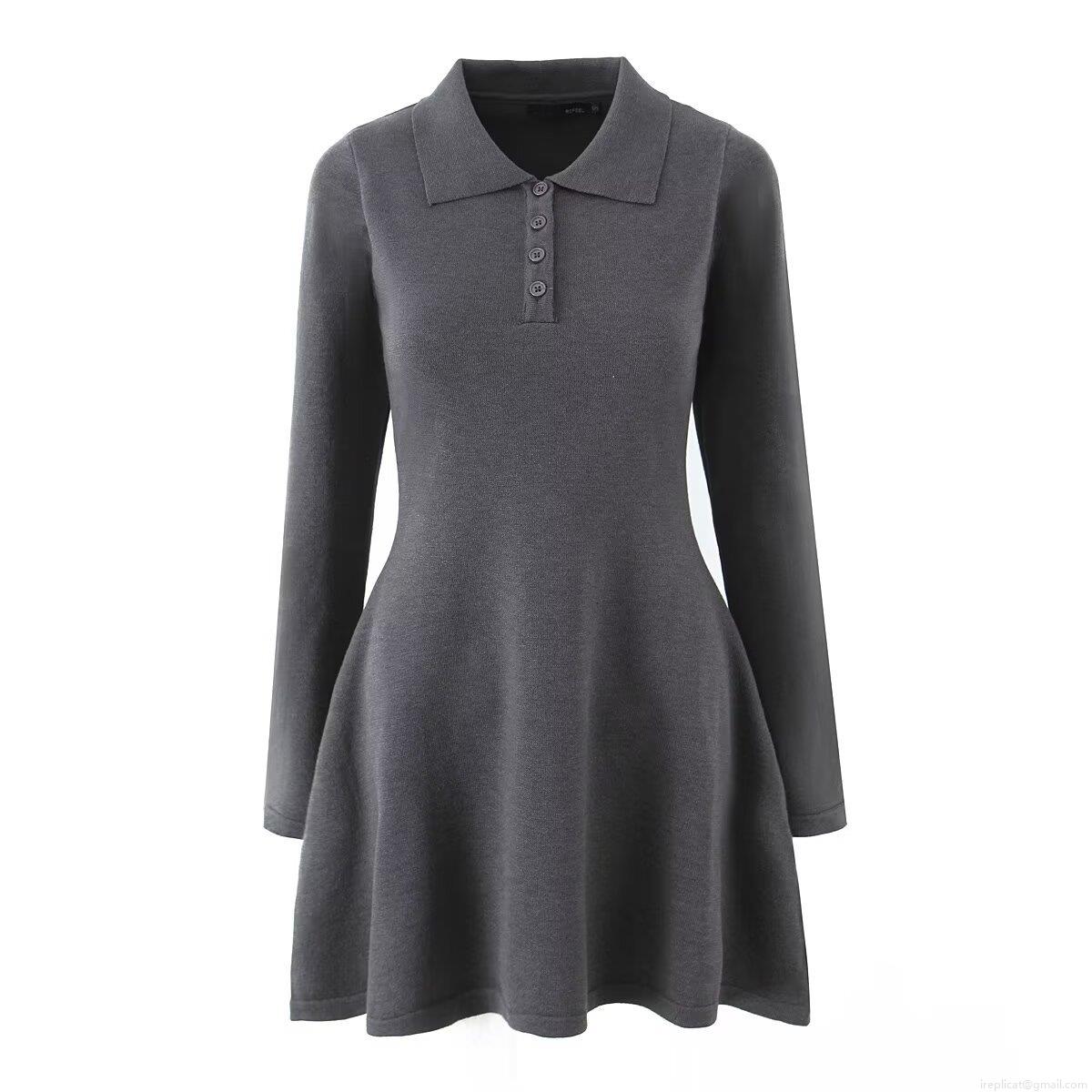 • Women's Knitted Dress Long Sleeve Polo Collar Button Front Slim Waist A-Line Mini Dress Solid Color Autumn Casual Office Streetwear Polyester Blend Ladies Fashion Clothing