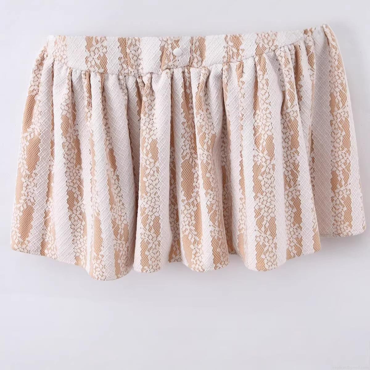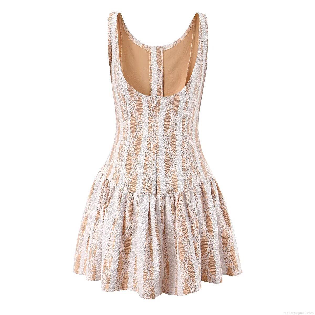 Women's Lace Splicing Mini Dress Sexy Backless Sleeveless A-Line Pleated Hem Mesh Hollow Out Bodycon Party Clubwear Beige White Vertical Striped Elegant Summer Short Dress