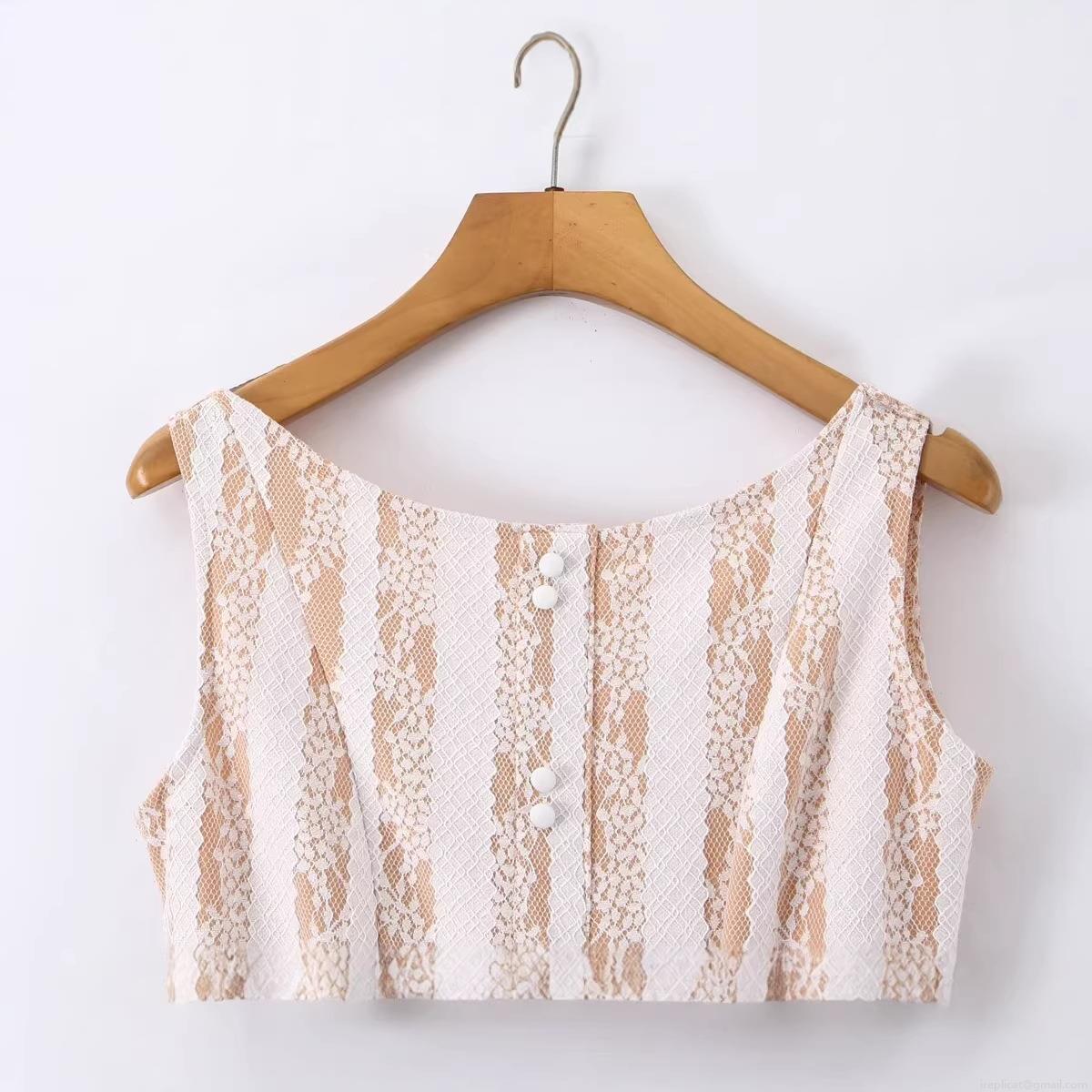 Splice, Lace, Color Blocking, Hollow Out, Buttons, Vertical Stripes, Pleats