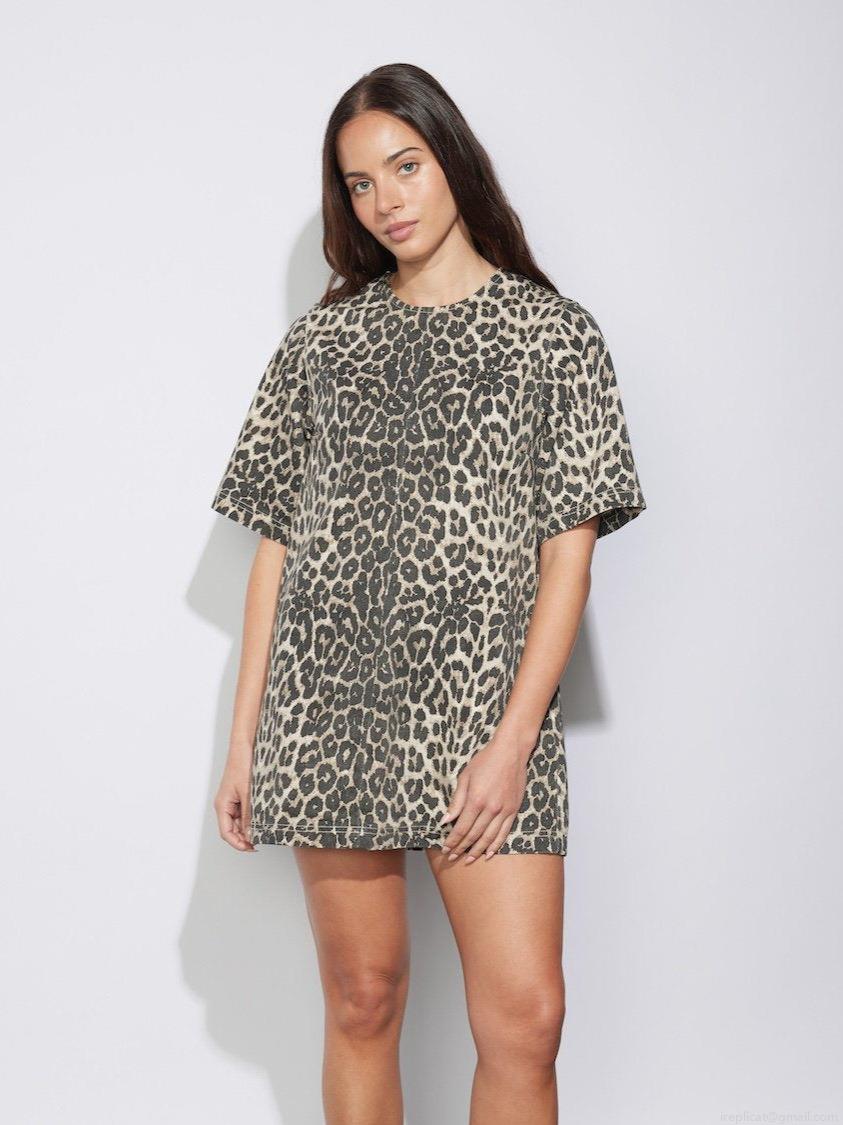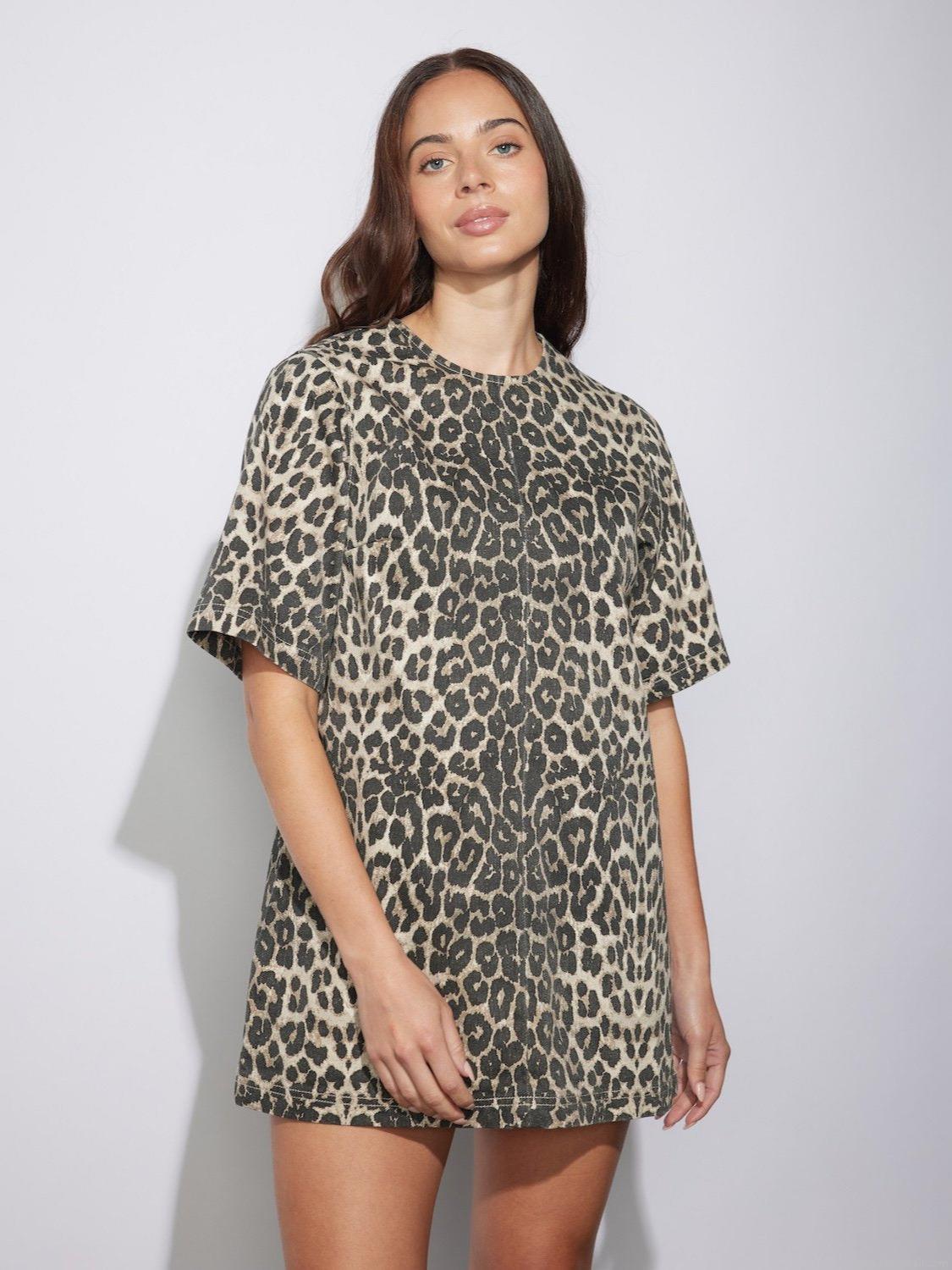 • Women's Leopard Print Mini Dress Cotton Blend Short Sleeve Round Neck Loose Fit T-Shirt Dress Back Zipper Summer Casual Daily Streetwear Trendy Outfit for Women
