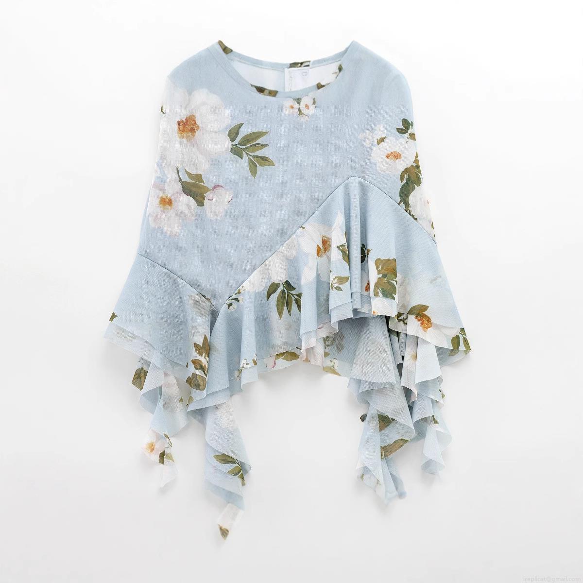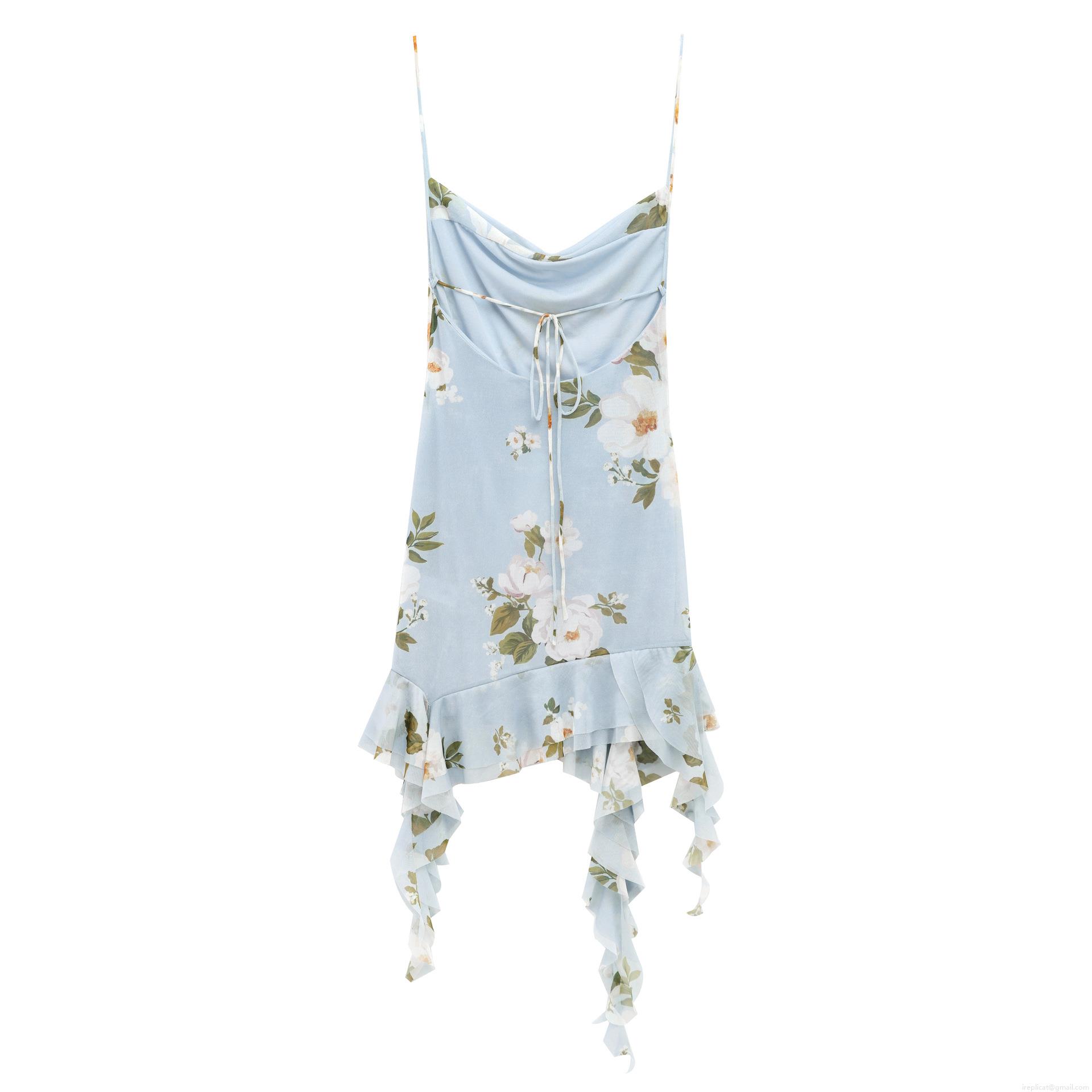 Floral Pattern, Ruffles, Printing, White Flowers, Irregular Cut, Thin Straps, Dangling