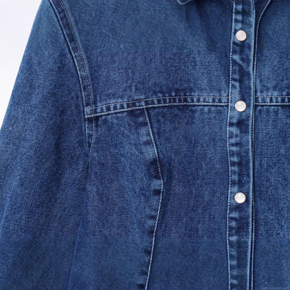 • Women's Long Sleeve Denim Dress Single Breasted Waist Cinched Mini Shirtdress Lapel Collar Streetwear Casual Cotton Blend Blue Dresses