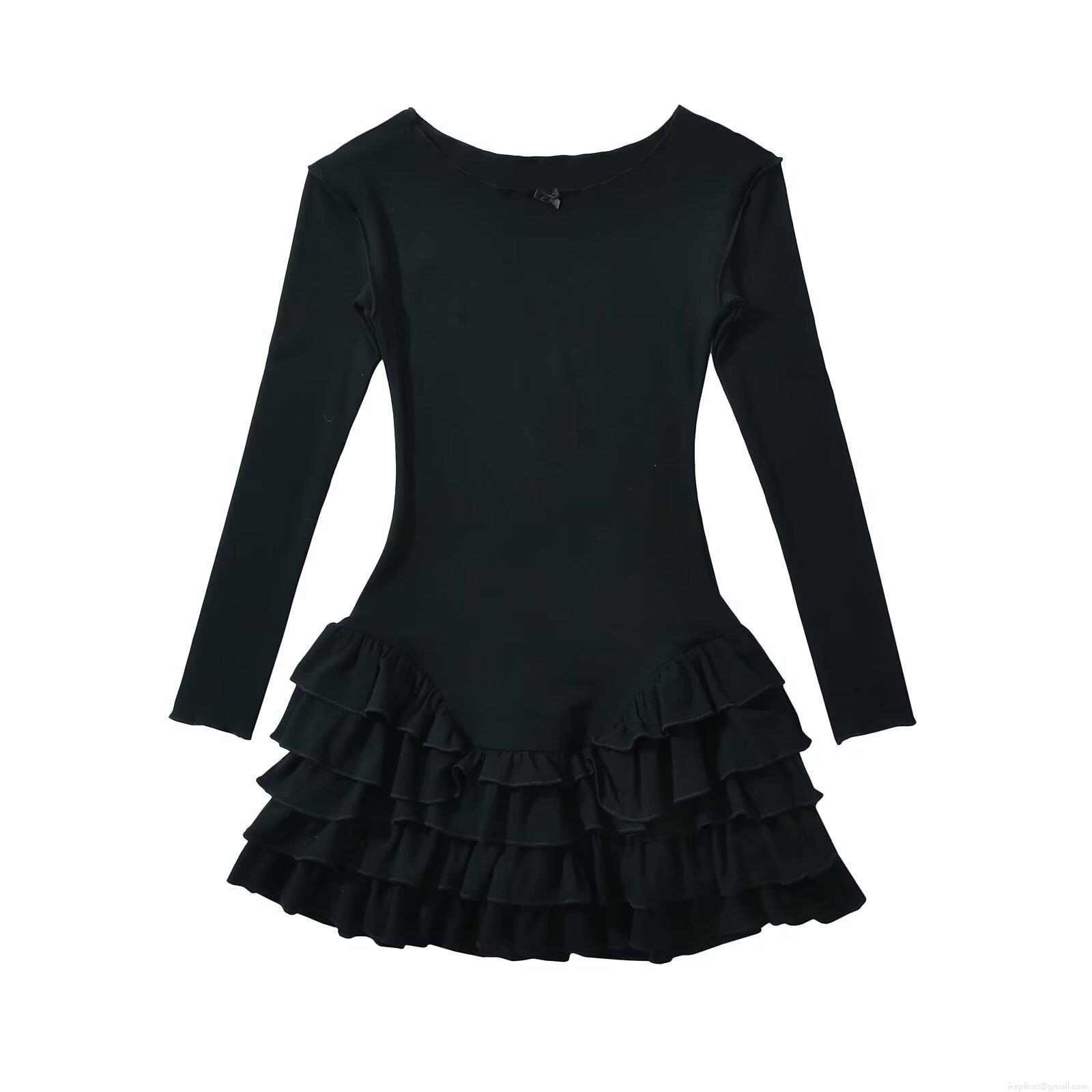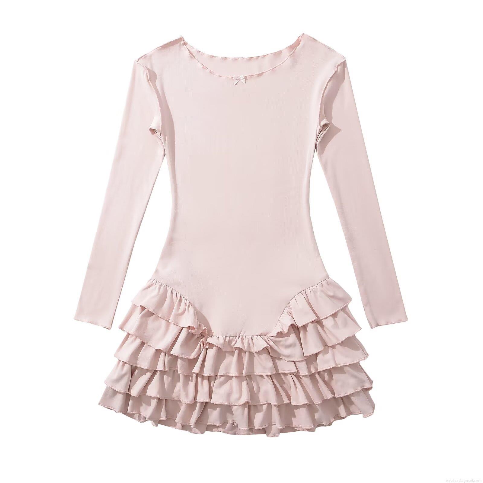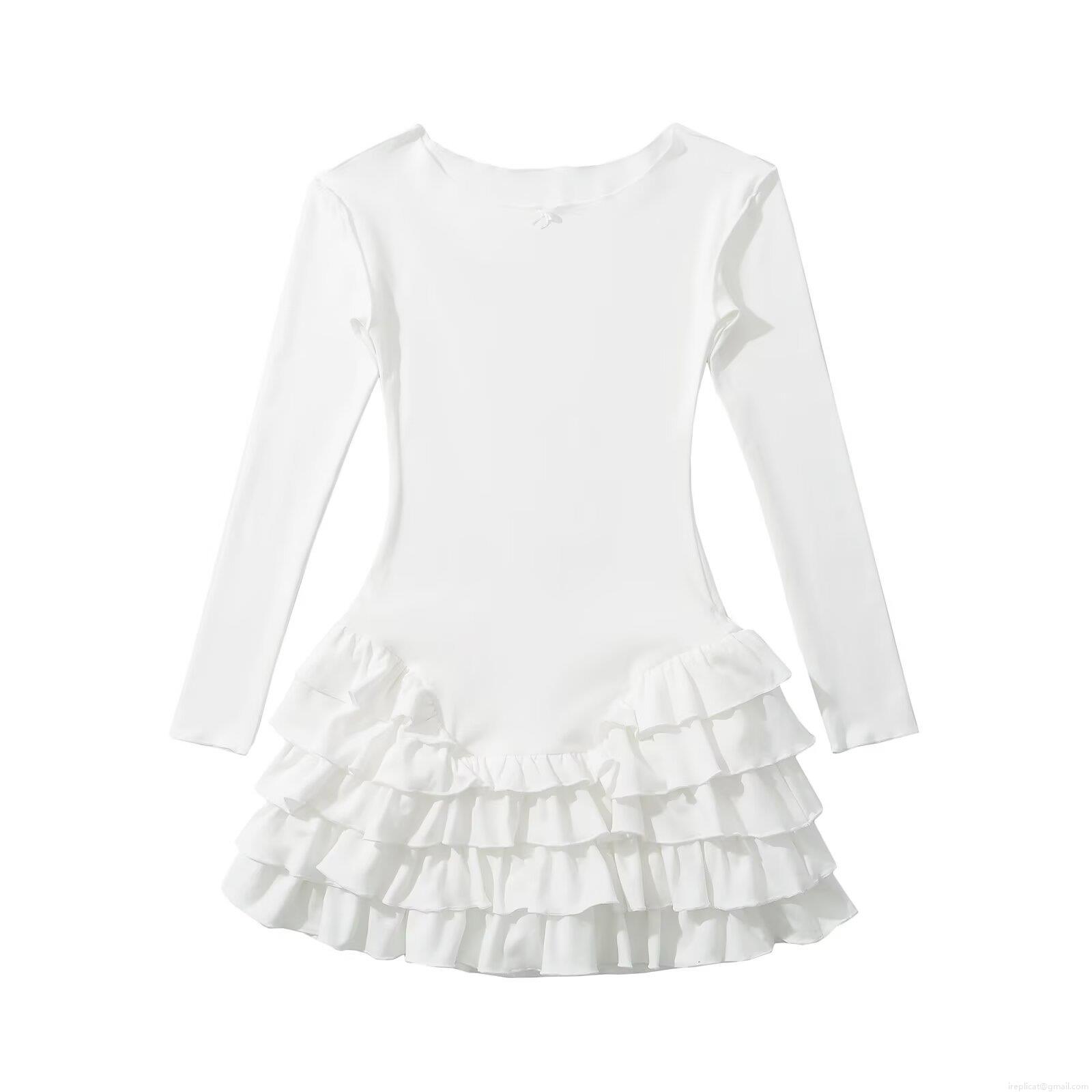 • Women's Long Sleeve Mini Dress Ruffle Hem Tiered Knit Bodycon Dress Solid Color Round Neck Sweet Streetwear Dress for Spring Fall
