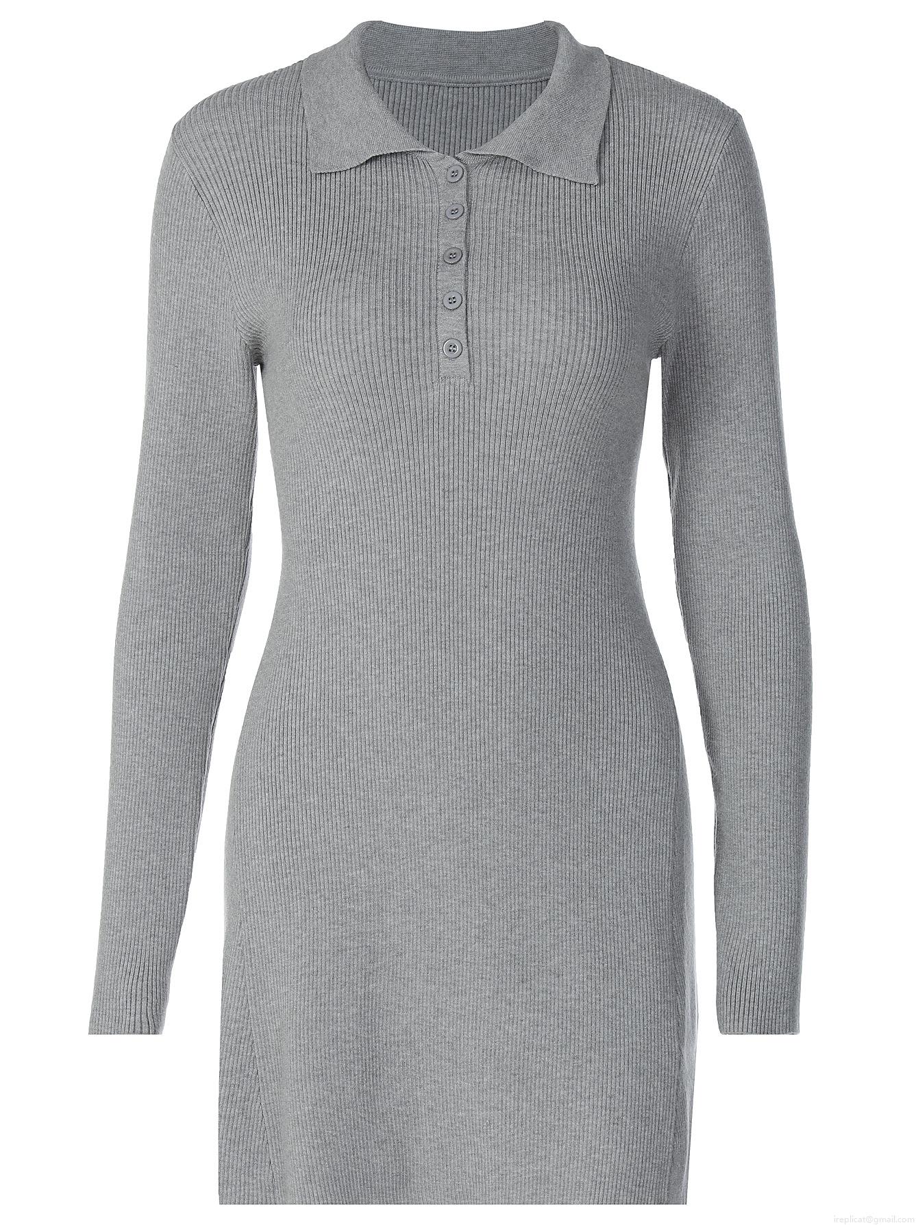 • Women's Long Sleeve Polo Neck Knit Mini Dress Solid Color Viscose Blend Ribbed Slim Fit Bodycon Casual Streetwear Dress