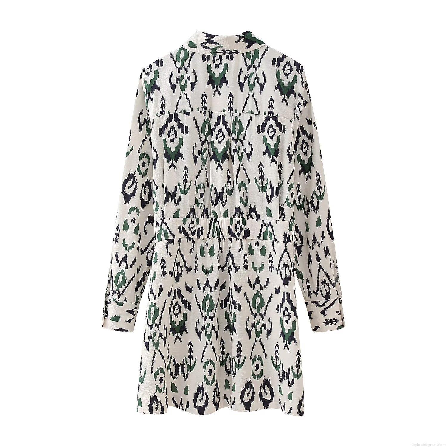 • Women's Long Sleeve Print Shirt Dress Elegant 100% Polyester Lapel Button Down Mini Dress For Casual Vacation Boho Style Lady Short Dress Spring Autumn