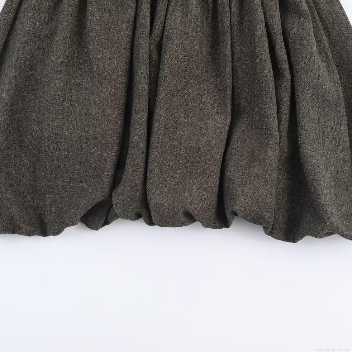 Solid Color, Pleats, Zipper, Batwing Sleeves, Flower Bud Skirt