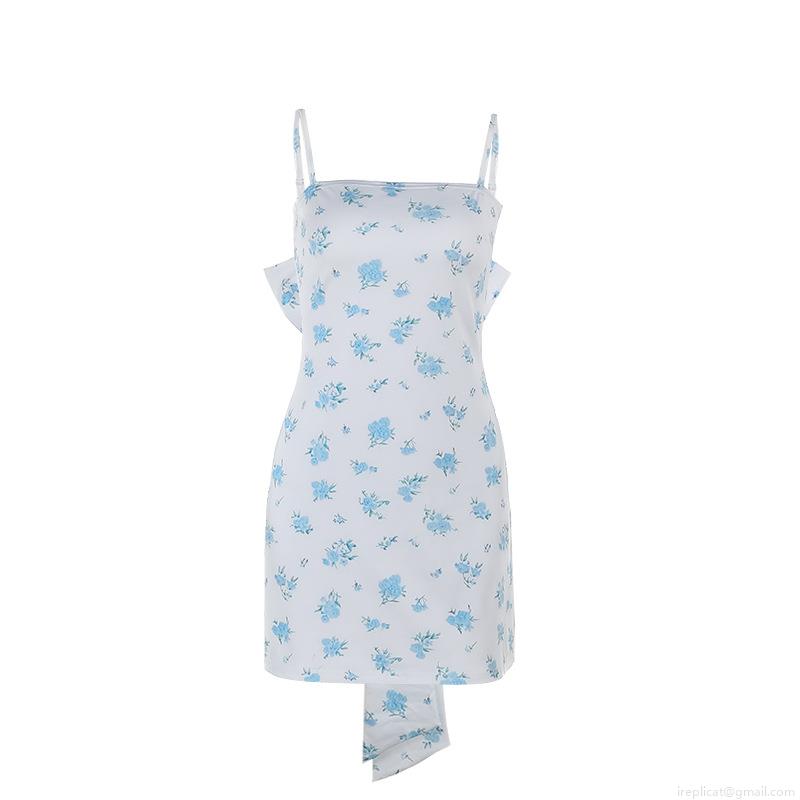 • Women's Mini Cami Dress Polyester Spandex Blend Blue Floral Print Large Bow Open Back Slim Fit Bodycon Dress For Summer Vacation Party Dating