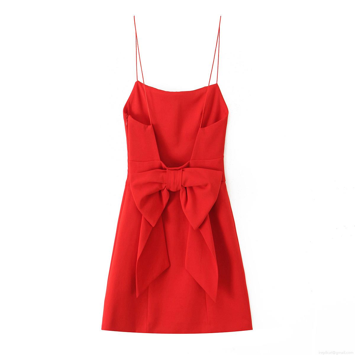 Women's Mini Dress Polyester Spaghetti Strap Big Bow Back Sexy Party Evening Elegant Lady Style Solid Color Dress
