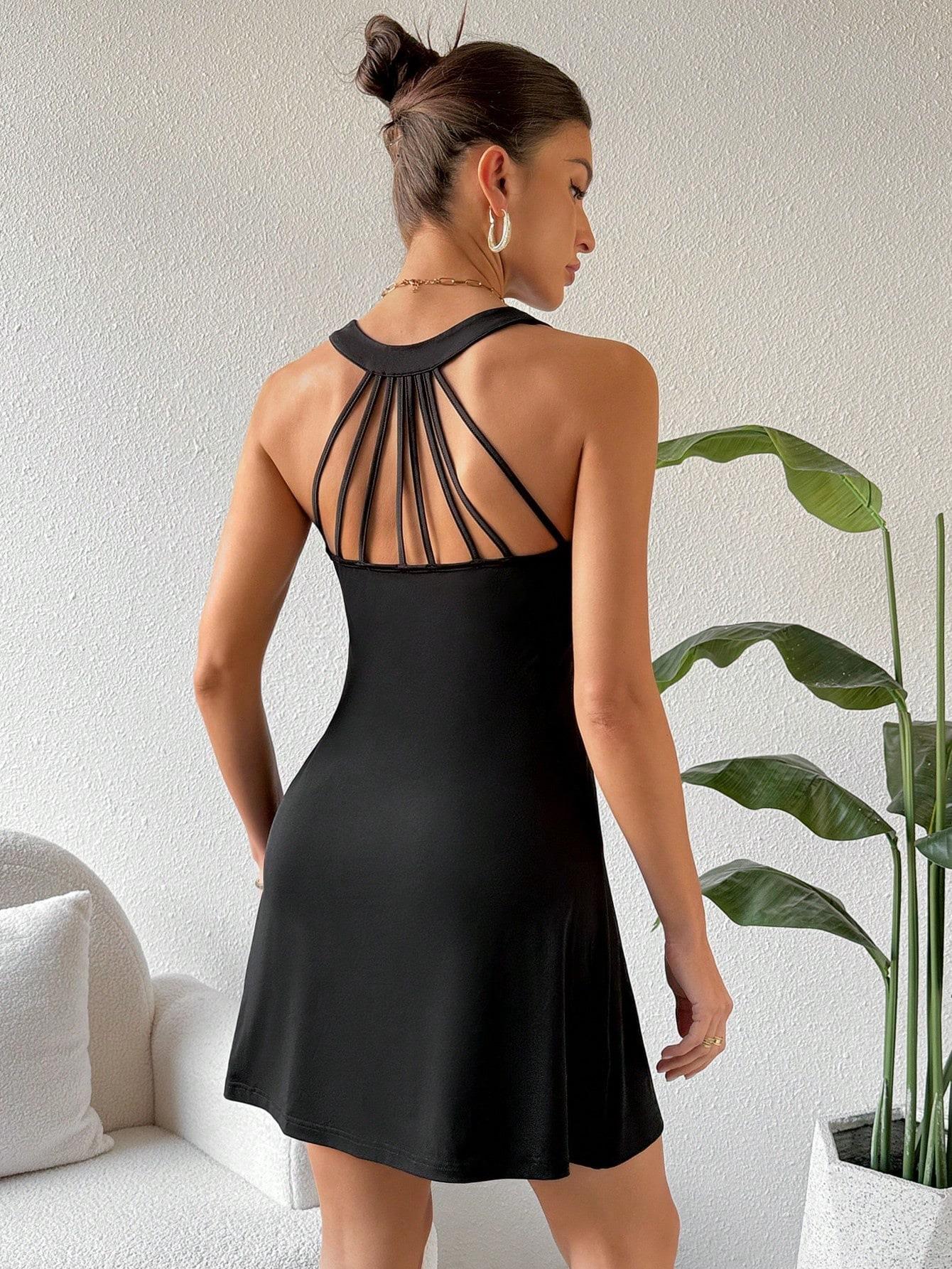 • Women's Mini Dress Sexy Backless Criss Cross Strap Sleeveless U-Neck Slim Fit A-Line Short Sun Dress Solid Color Polyester Spandex Casual Night Out Party Clubwear