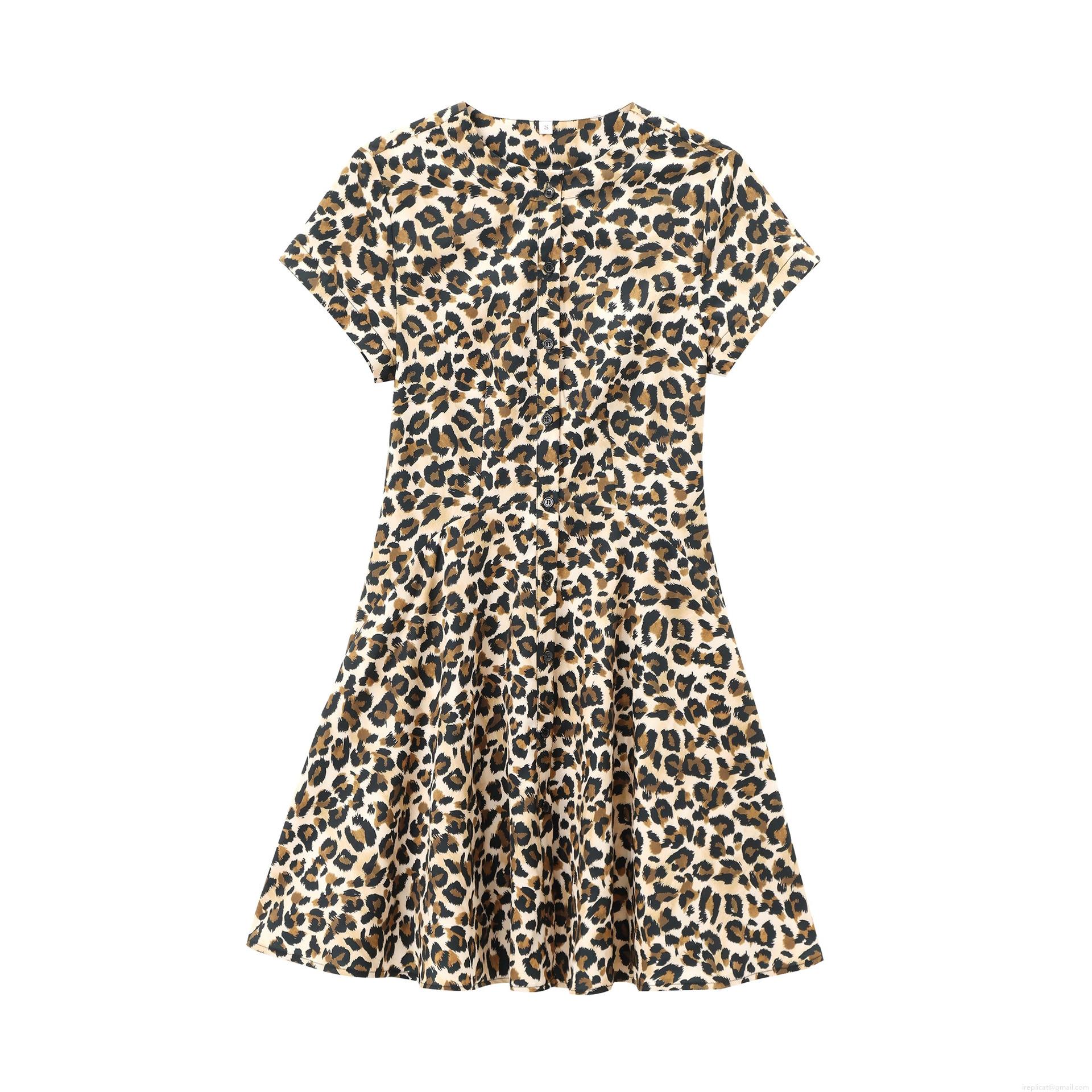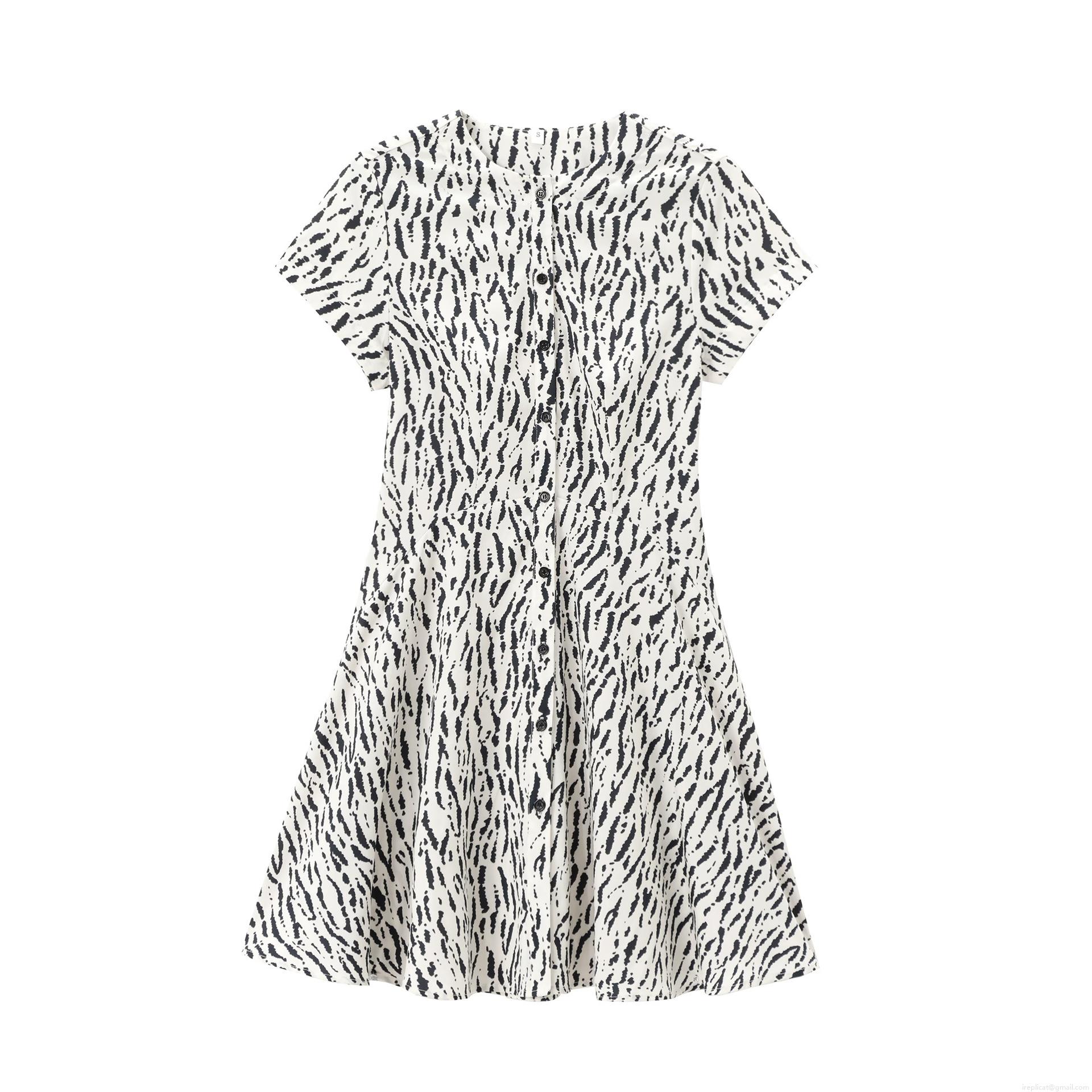 • Women's Mini Dress Summer Short Sleeve Round Neck Single Breasted A-Line Skirt Stylish Zebra Leopard Shell Animal Print Polyester Casual Street Style Daily Vacation Sundress for Women