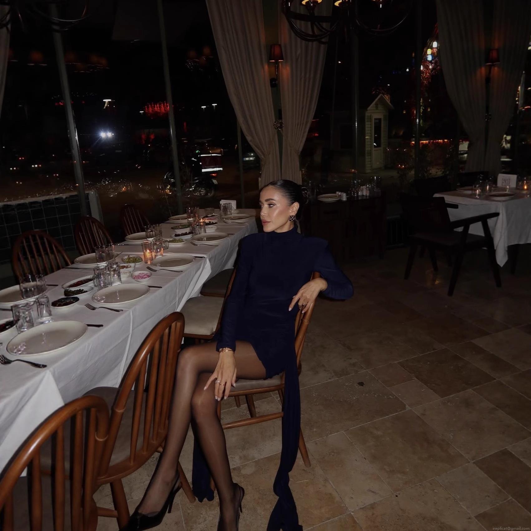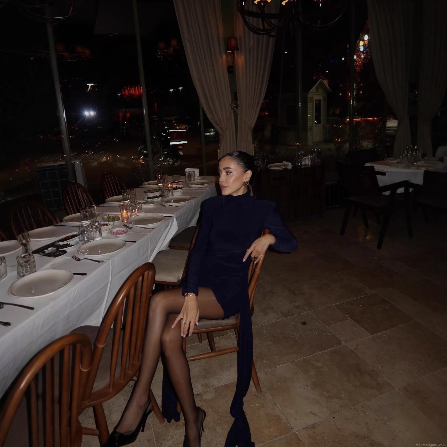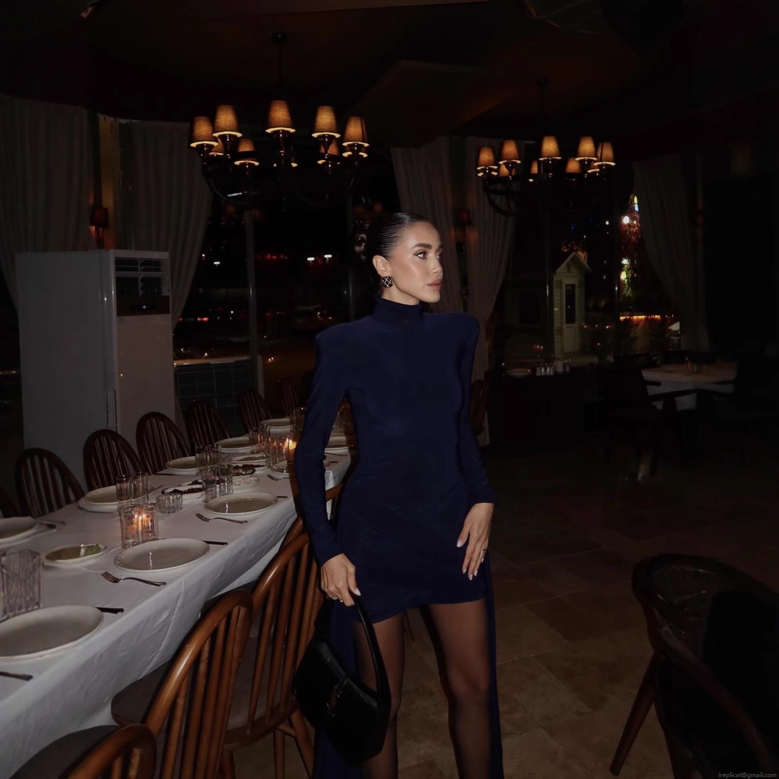• Women's Navy Blue Bodycon Mini Dress Long Sleeve Mock Neck Ruched Side With Long Drape Party Night Evening Dress Elegant Slim Fit Cocktail Gown