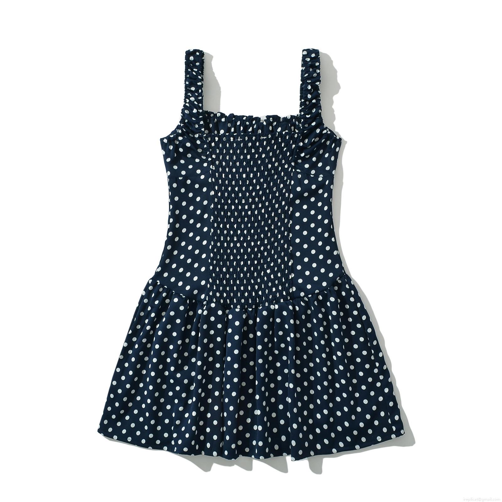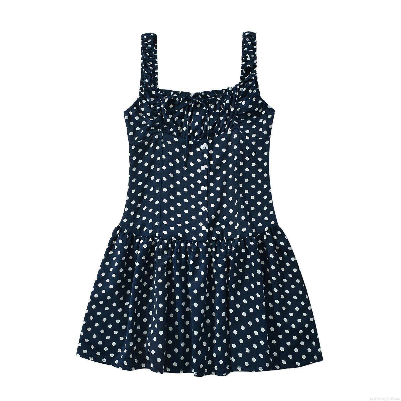 Polka Dots, Pleats, Elastic Waistband, Polka Dot Print, Thin Shoulder Straps, Bundling Process