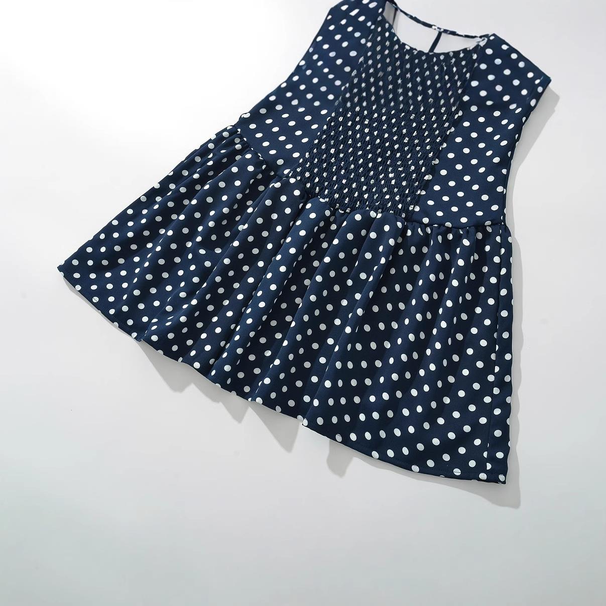 • Women's Navy Blue Polka Dot Spaghetti Strap Mini Dress Elegant Smocked Waist Sleeveless Polyester Summer Beach Party Short A-Line Sundress