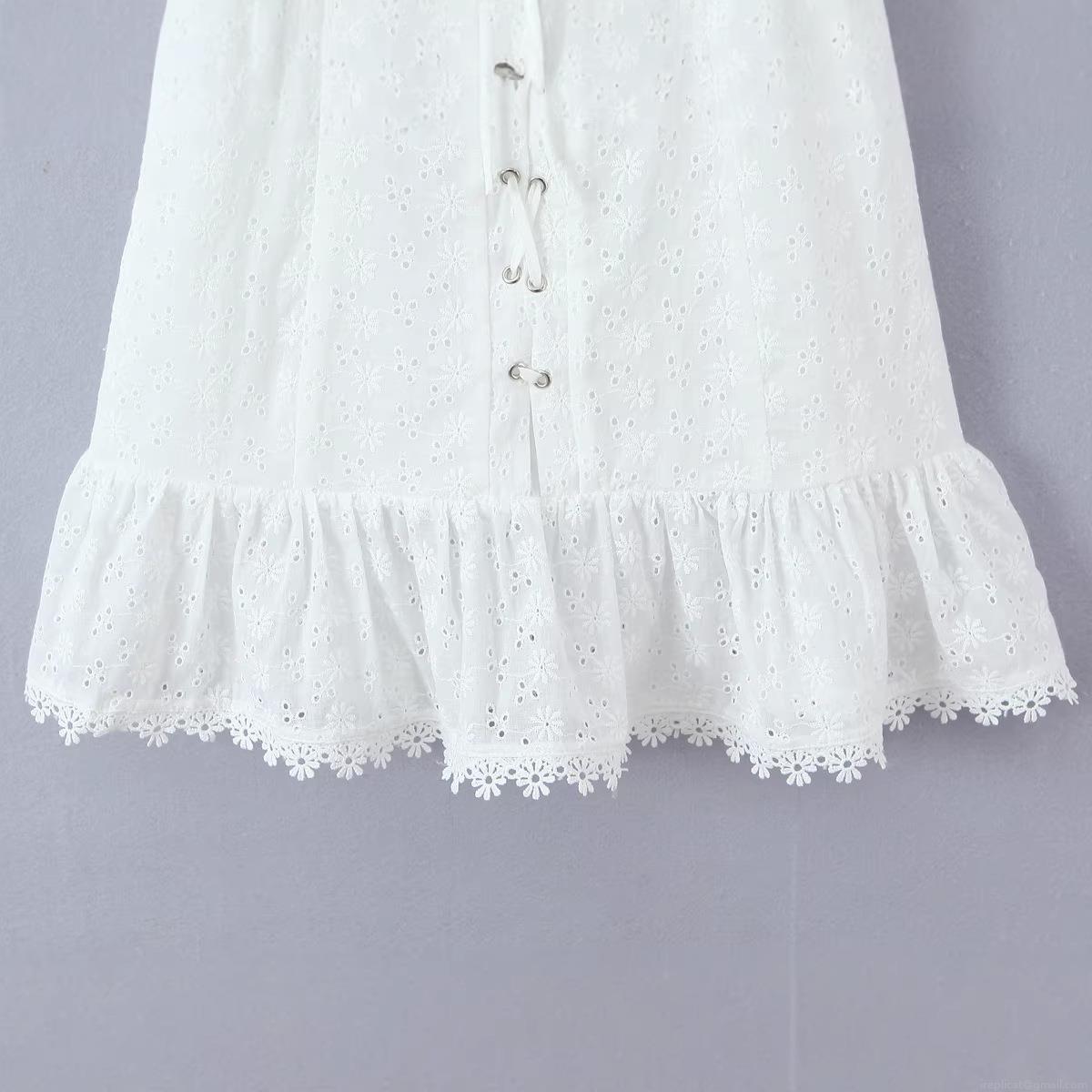 • Women's Off Shoulder Mini Dress Hollow Embroidery Cotton Lace-Up Short Sleeve A-Line Ruffle Summer White Dress Streetwear Party Vacation Short Dresses