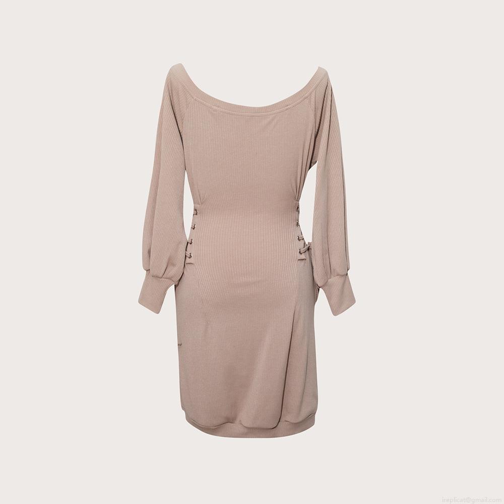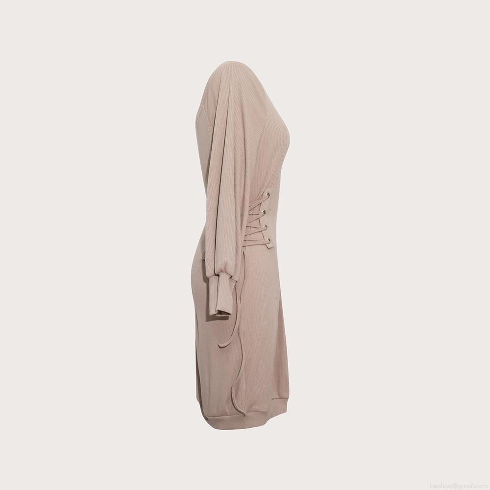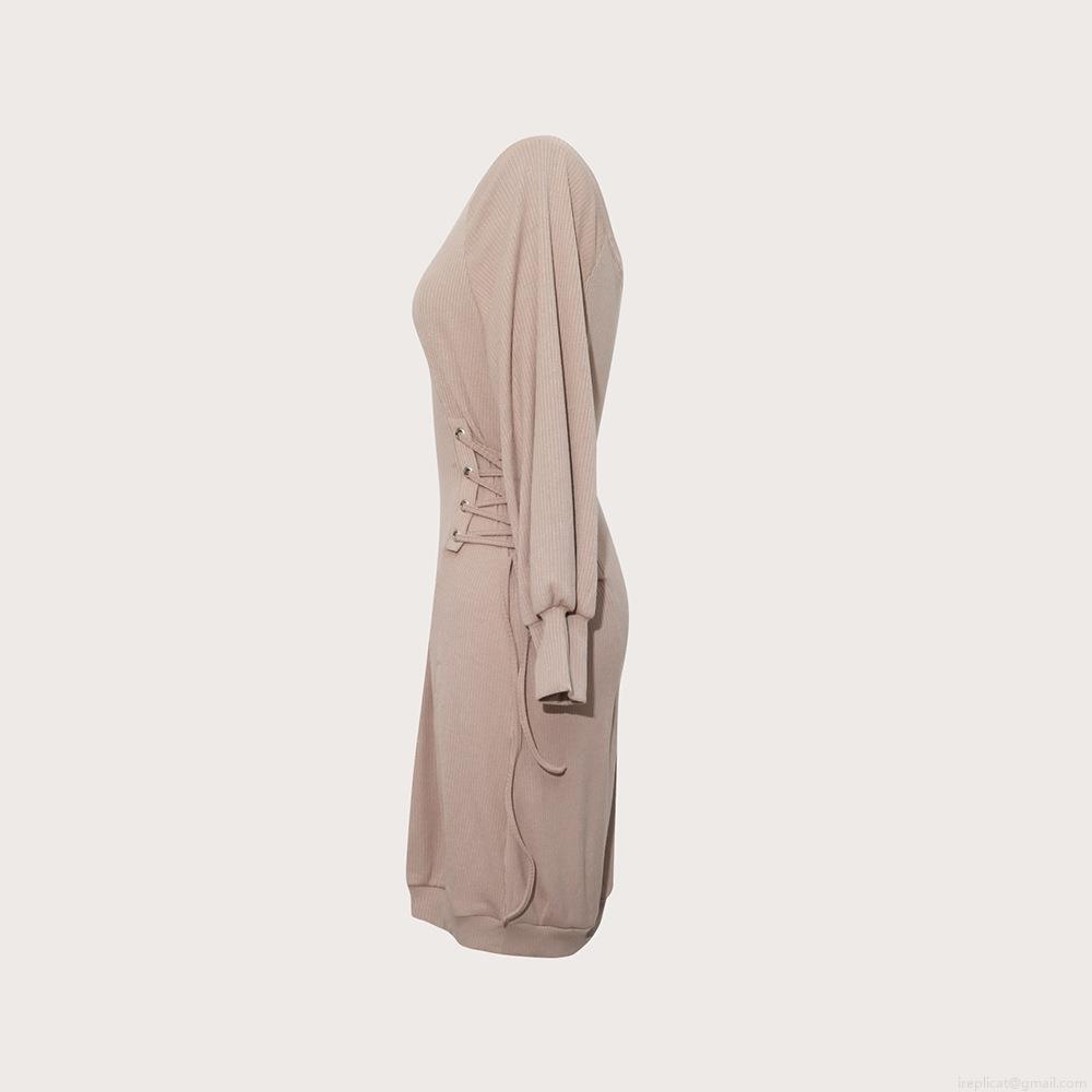 • Women's Off Shoulder Ribbed Knit Mini Dress Sexy Long Sleeve Side Lace Up Waist Bodycon Party Club Dress Elegance Bodycon Slim Fit Knitwear Short Dress